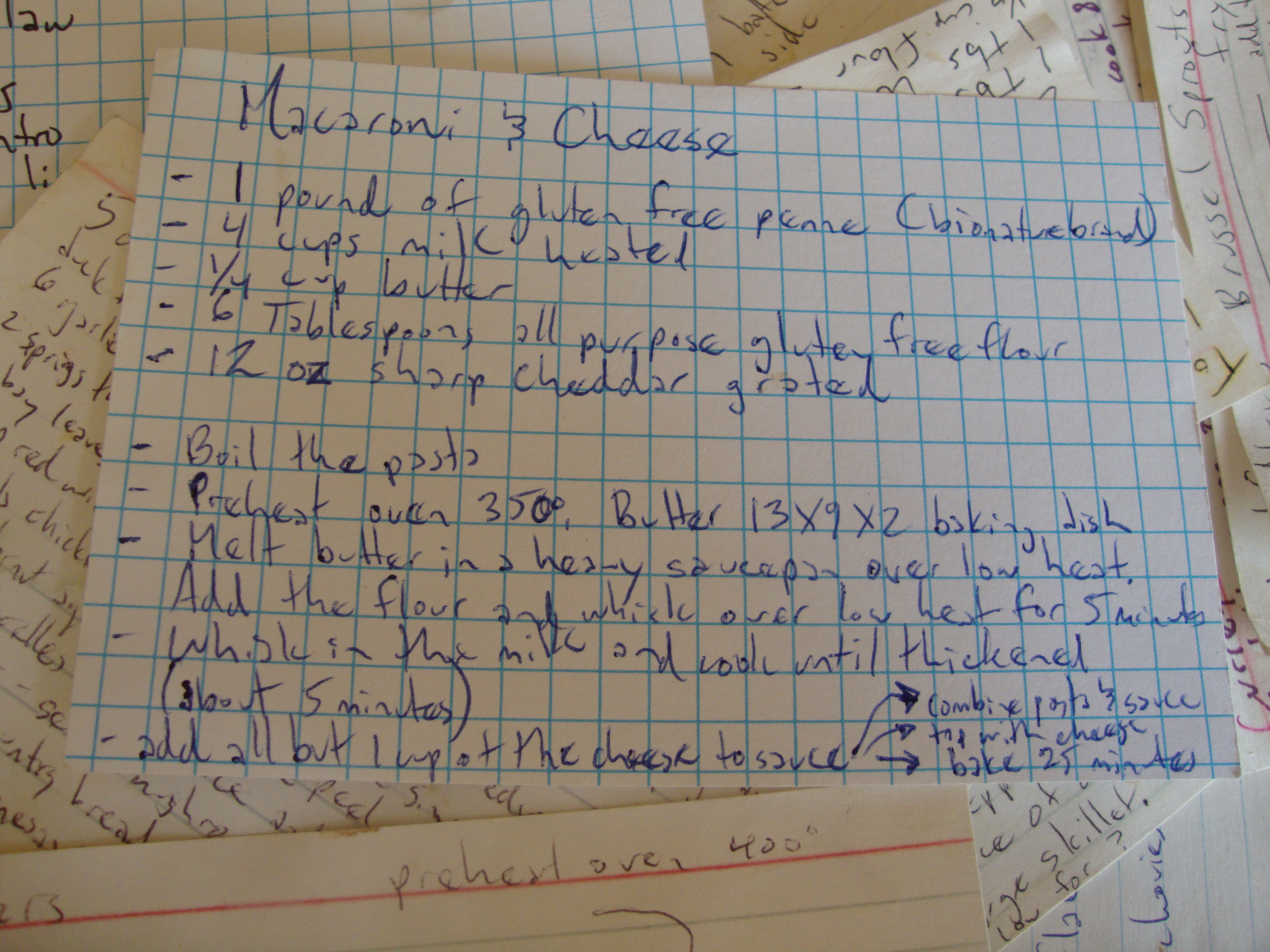 I have to tell you the current version of this that Liam says is the best mac and cheese he’s ever had. Saute leeks and mushrooms in butter to add to the sauce and use swiss cheese instead of cheddar. Season with salt and pepper. It’s totally grown up and classy.