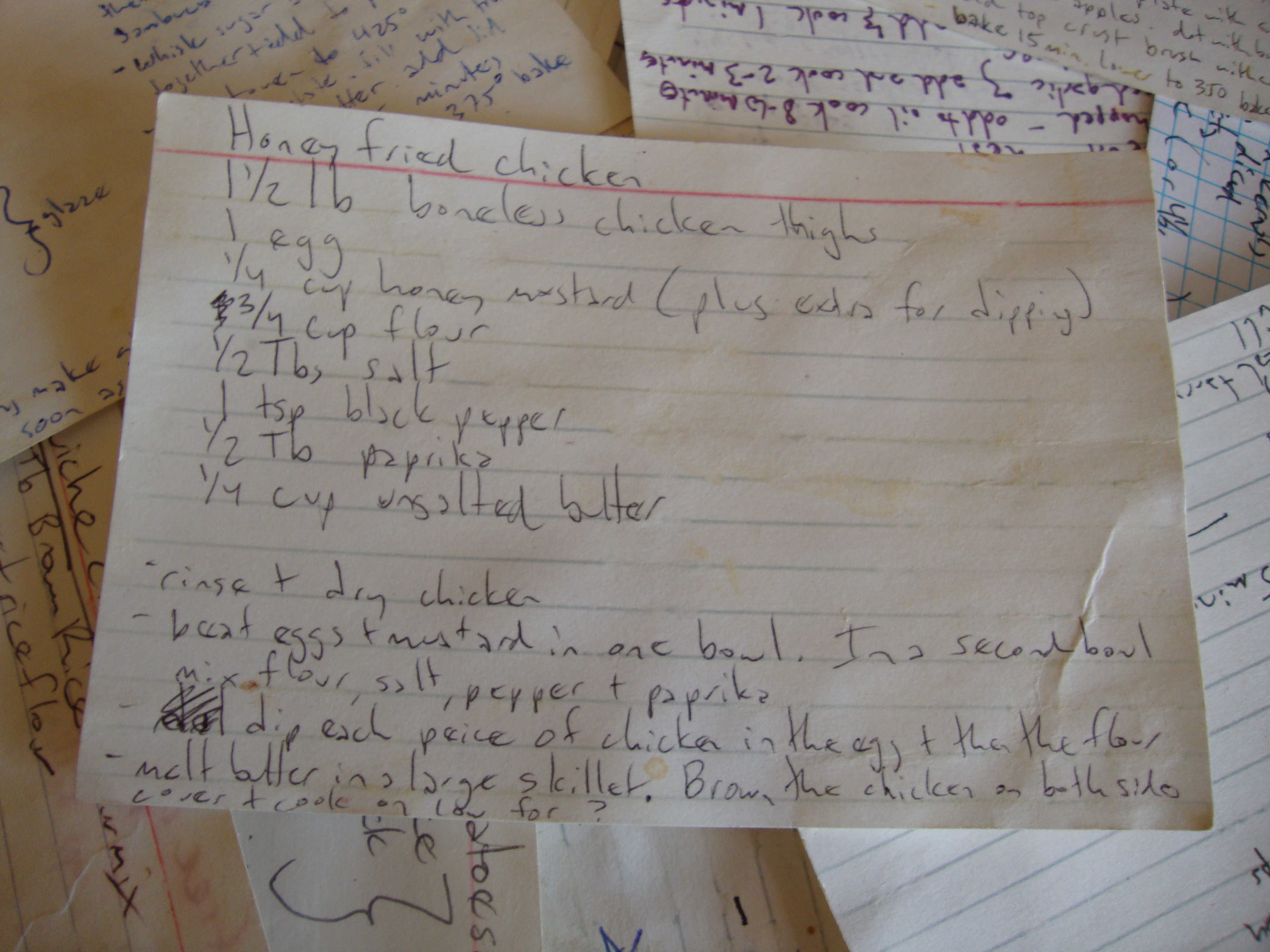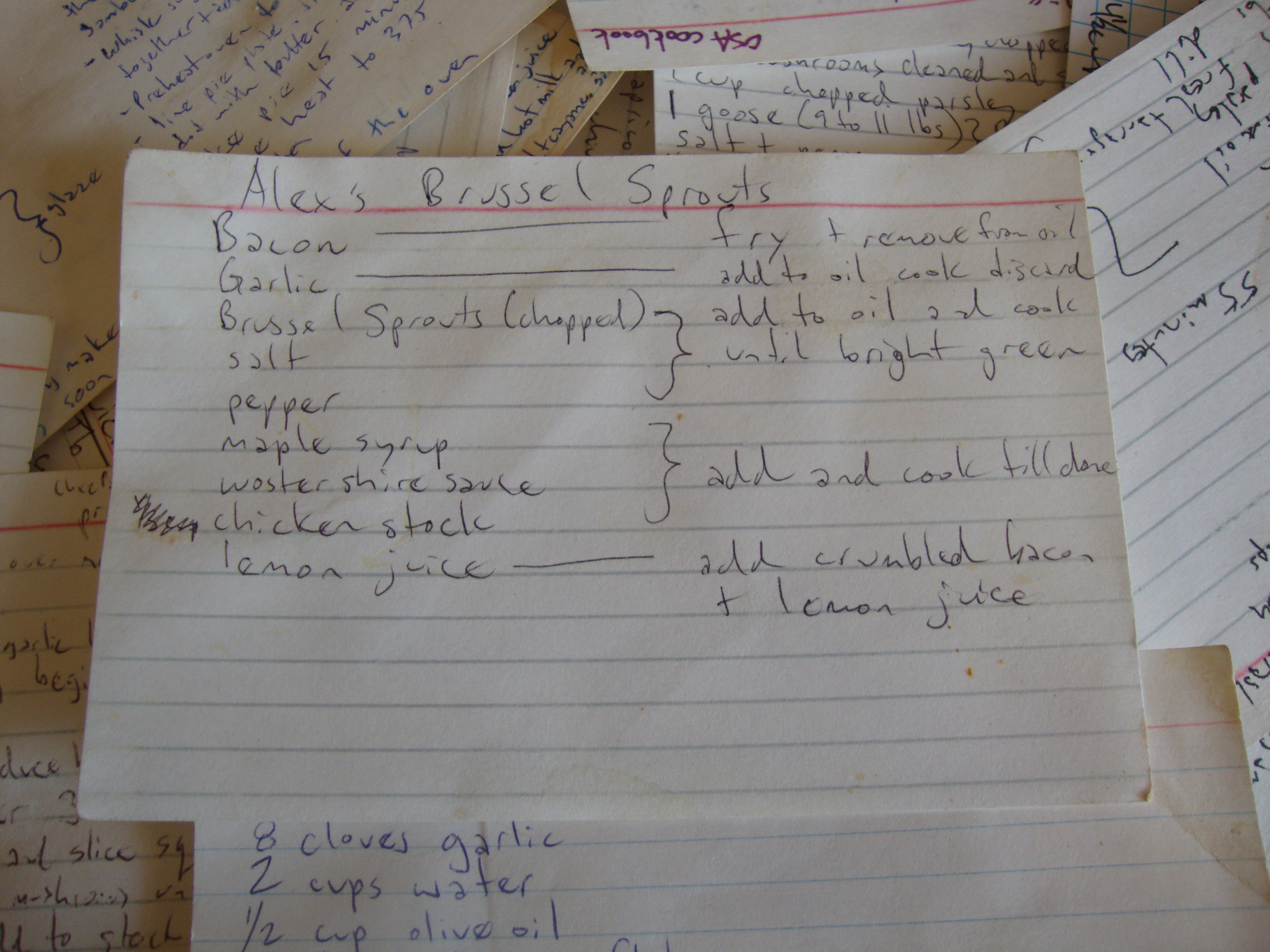 This chicken recipe was inspired by a fried rabbit recipe that I tried once. I love rabbit but I did not like it fried. The batter was super though and I decided that it would be good for chicken. I use this delicious sharp honey mustard called Honeycup that comes in an octagon shaped jar. It’s from Canada but I have found it pretty much everywhere. The Brussel sprouts are made in the style of my old room-mate, dear friend and home cook extraordinaire Alex Endy. Alex and his wife Katherine are the people who I call when I can’t remember how to cook something. Even people who hate Brussel sprouts like them this way.