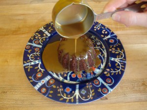 - When the cake is done, let it rest for ten minutes before inverting it onto a plate. While your waiting, make the sticky make the sticky toffee sauce by combining the heavy creme, Lyle’s golden syrup and brown sugar in a heavy bottomed sauce pan. Bring to a boil and stir for 10 minutes.