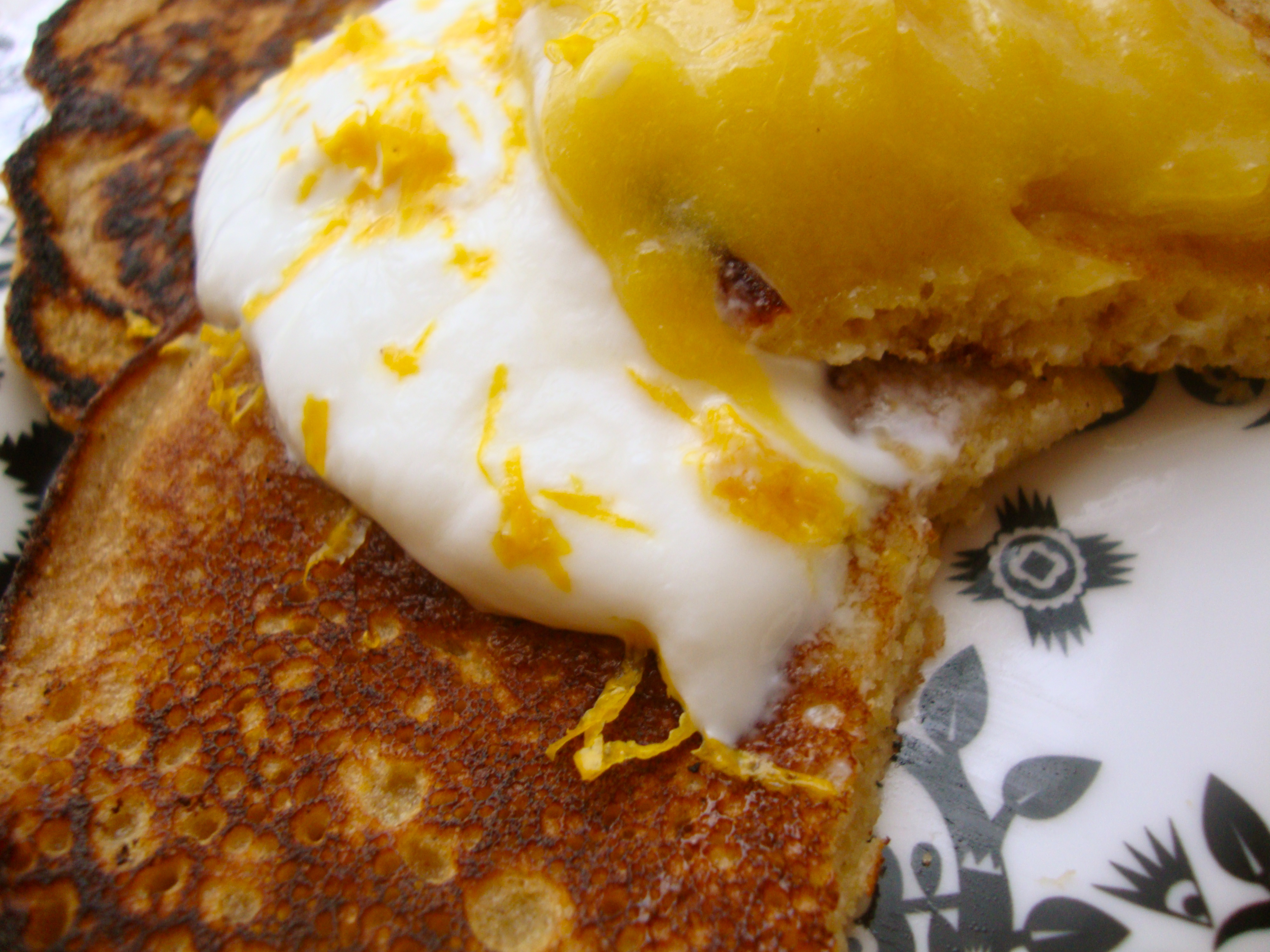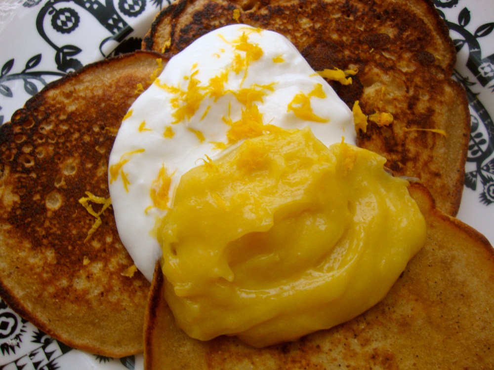 These pancakes are really yummy – Silvi made them with gluten-free grains, which is good for my tummy. I like them with a bit of yoghurt, which brings out the delicate citrus flavour.