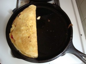 Omelet in process #2 Posted by Big Sis Little Dish on January 31, 2011 Fold the omelet and let it finish cooking