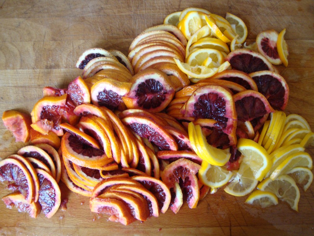I’ve been making this Sangria a lot in the last few months. I made a truly astounding quantity for the Don Cristobal, Billy Club Man opening night and donor thank you party and another smaller amount just for our cast when we got together to watch the video recently. I made a batch for the cast of a puppet show that I went on tour with recently. We all had lovely hotel suites with kitchens and this particular cast were older (well my age anyway) and frugally inclined so drank Sangria and ate home made nachos on the cheap in our lovely hotel suite all week! It was very civilized.