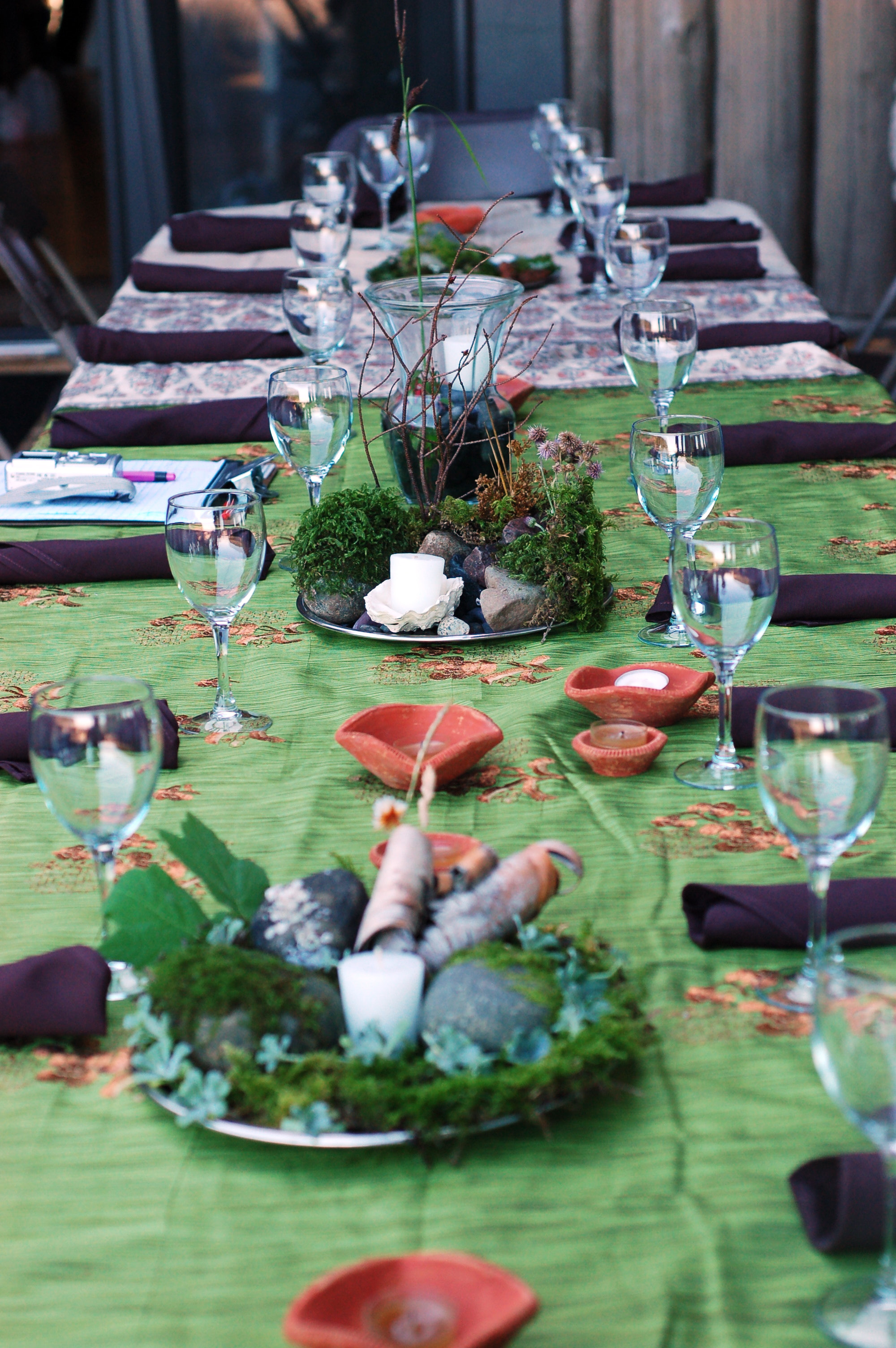 My sister grew flowers in her garden in Vancouver and the rest were foraged from the forest near the lodge or purchased from the local dahlia farm. Our friends created magical moss and flower gardens to decorate the tables.