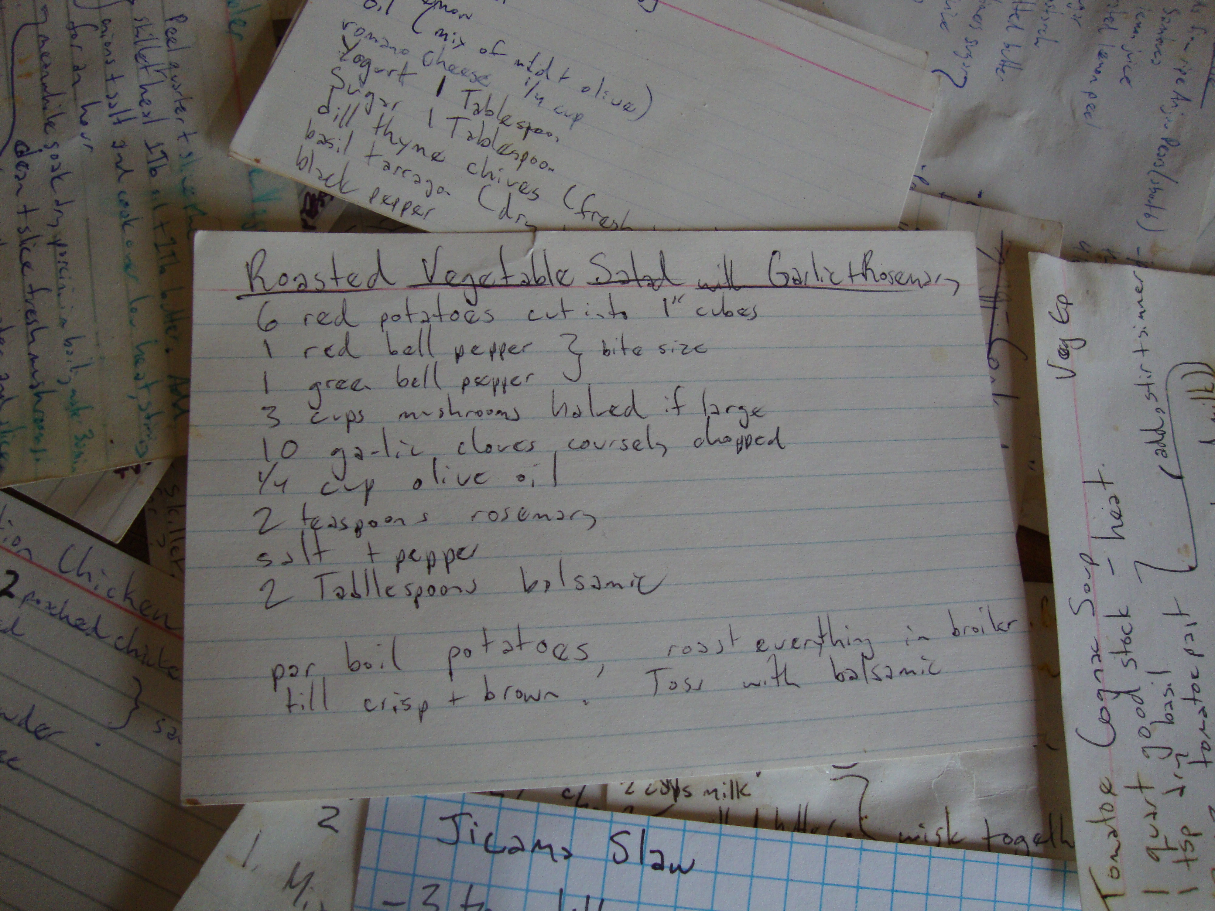 I went through a period during college and for years after when I made this salad a lot.  I  had not made it in years, but thought to include it in the menu for our wedding picnic because  it does well sitting out a room temperature and it uses fairly inexpensive ingredients that were in season.  At least it was inexpensive until I decided to buy the garlic from the local garlic farmer on Gabriola.  This is not inexpensive garlic!  I spent 60 dollars on garlic!  That is crazy!