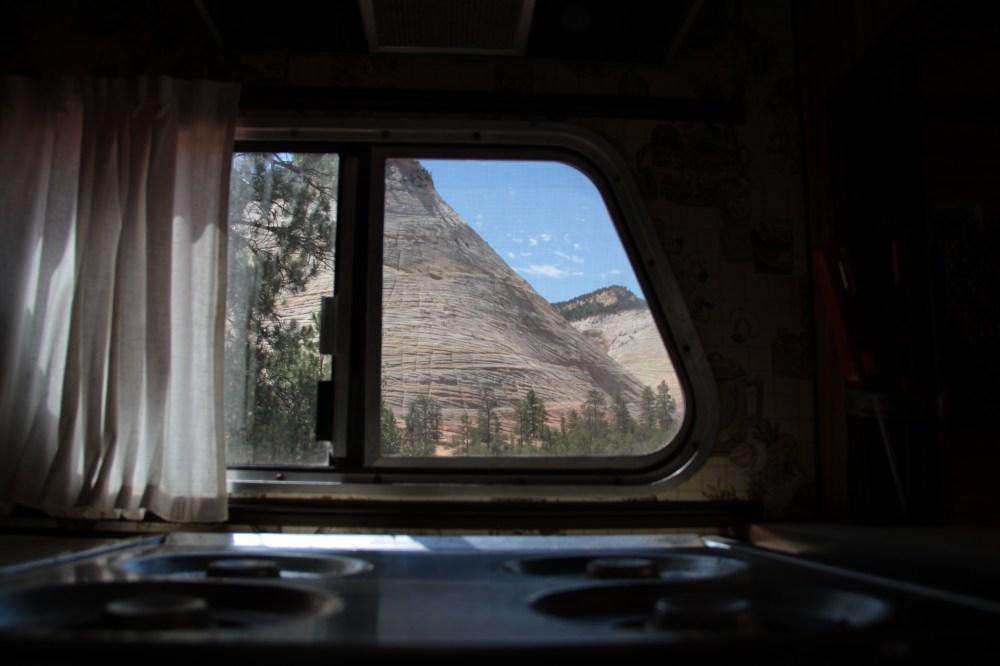 Wow it looks like that sort of mountain is exactly what’s meant to be looked at from inside a camper. The colours, texture and shape are spot on!