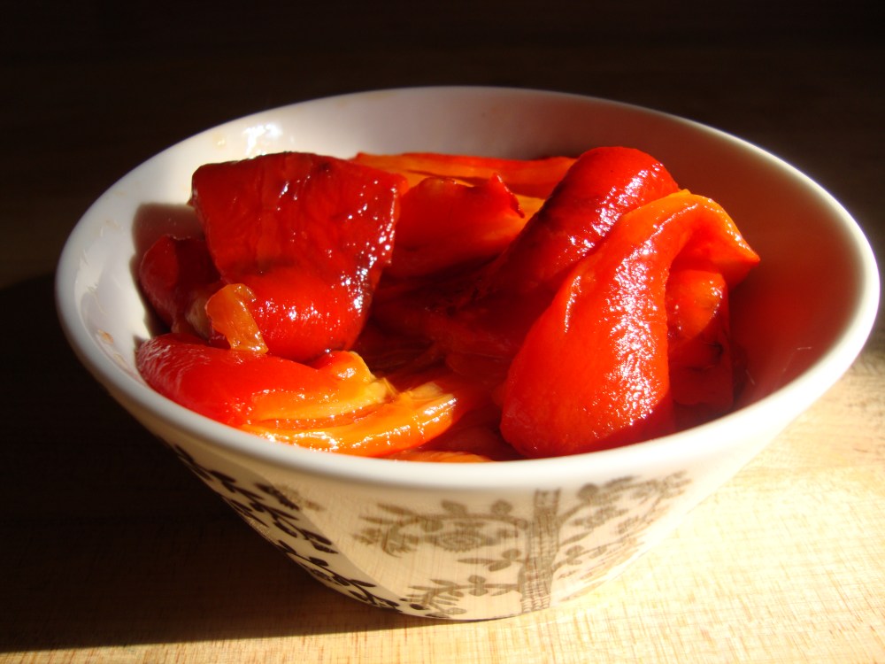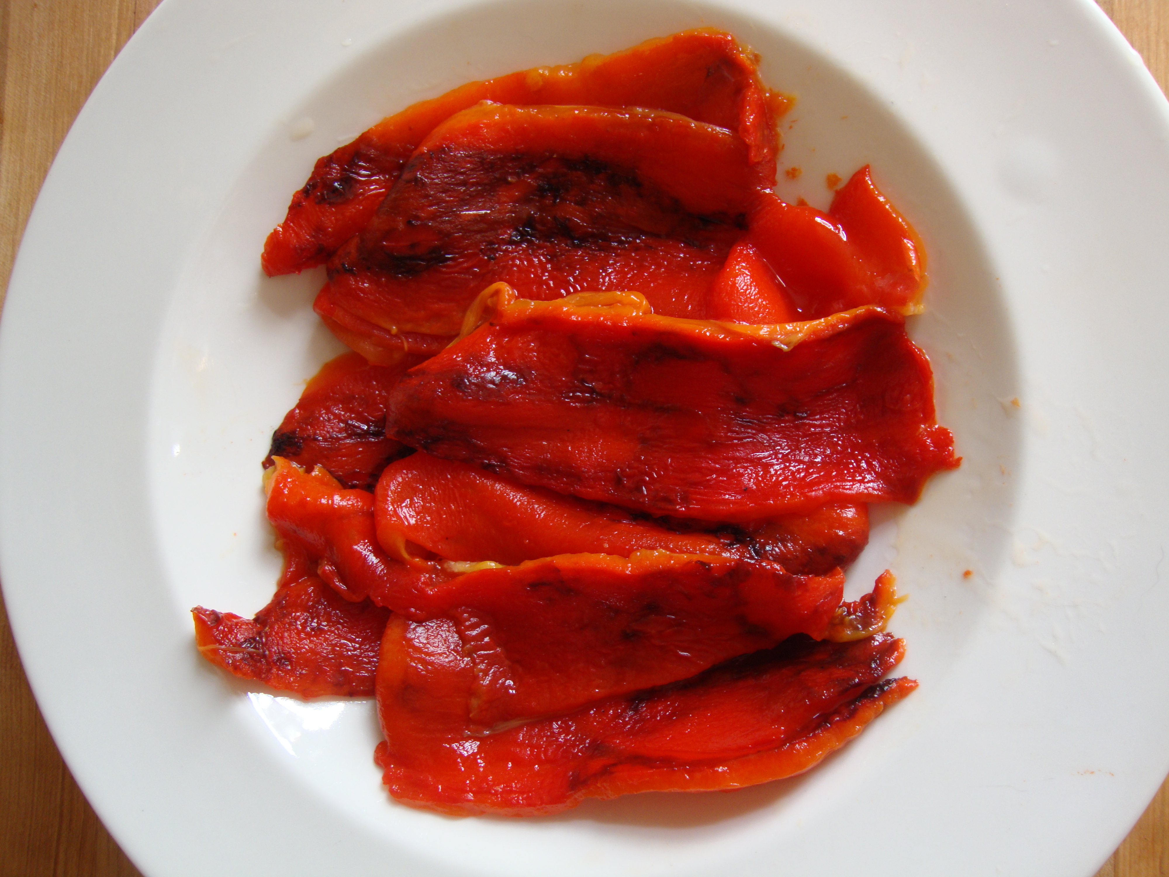 I do not have outdoor grilling capacity, so I do it in my broiler.  This is a recipe for the fall.  Ideally you do this at that magical moment when large bags of peppers start to become available at your local green market for cheap AND the weather has cooled down enough to use your broiler.  When this moment happens, I like to buy a bunch of red peppers and roast them so that I have them on hand.  Roasting peppers does not take long and its really easy.  You are essentially steaming every bit of sweet delicious pepper inside of its own skin.  The process makes the peppers an even more amazing shade of red, imparts them with smokey flavour and makes your house smell excellent.