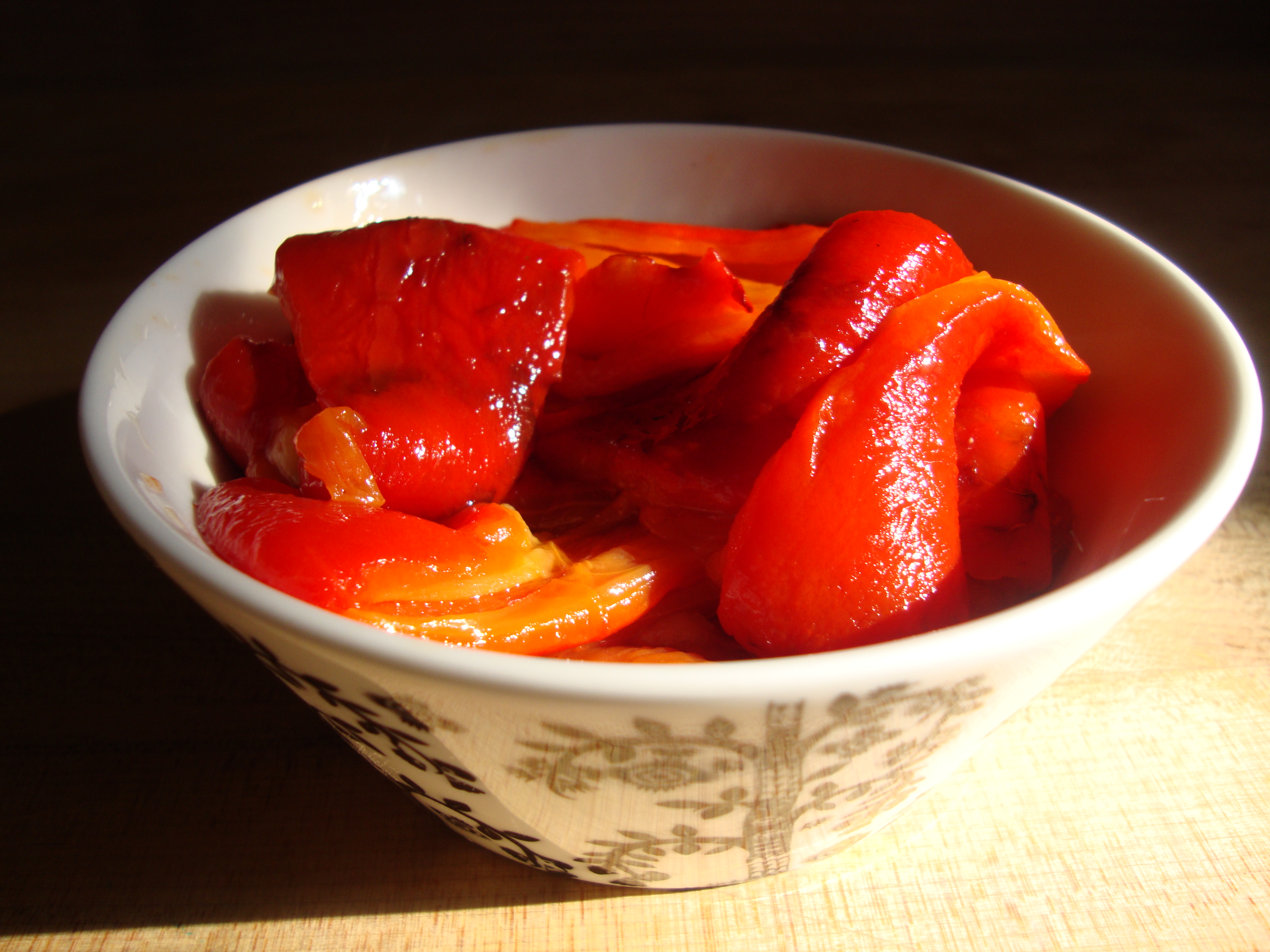 7. Store the peppers in their juice  in a sealed container in the fridge.  I usually eat all of mine within a week.  I add them to omelets and gluten-free pasta with greens and feta or anything that involves goat cheese and tomatoes.