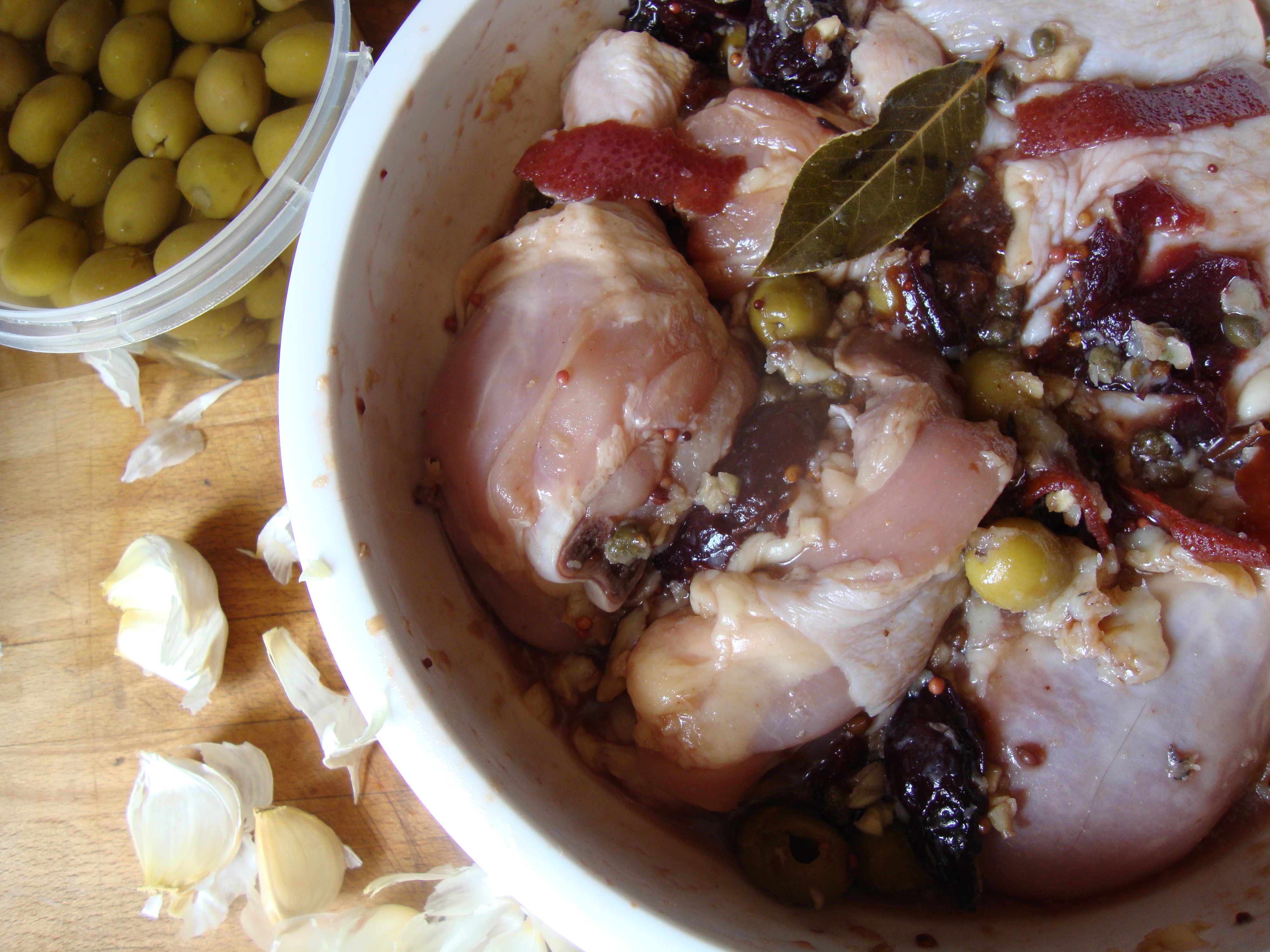 CHICKEN BAKED WITH PRUNES, CAPERS AND GREEN OLIVES