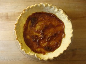 - Spread the apple cardamom butter into the pre-baked crust. Arrange the pears on top of the apple butter