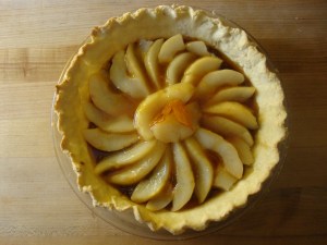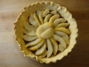 A few months later, I found myself with exactly the same ingredients (except that the pears were large) and I made the tart again. This time I took pictures. It’s good and I made it up!