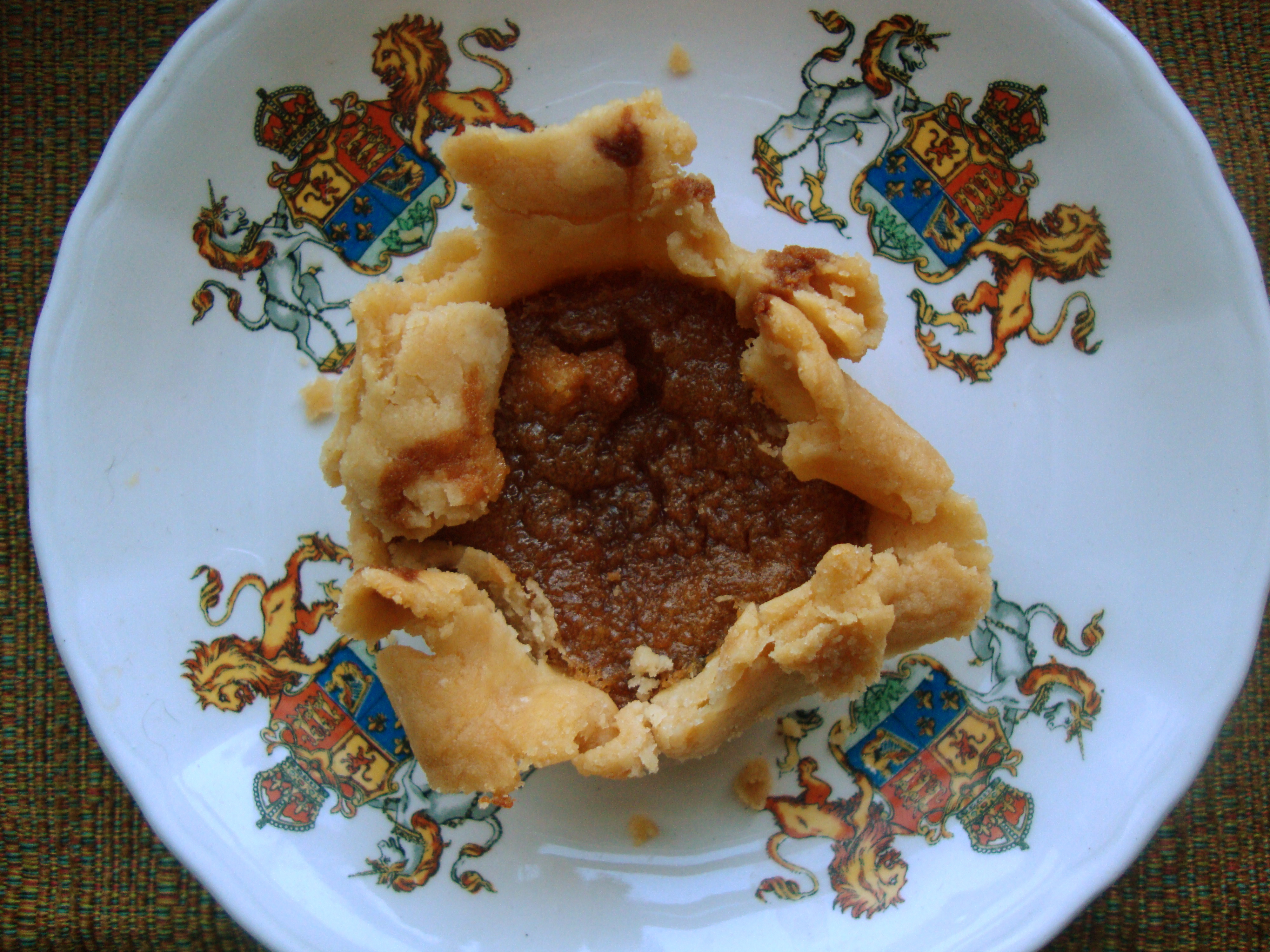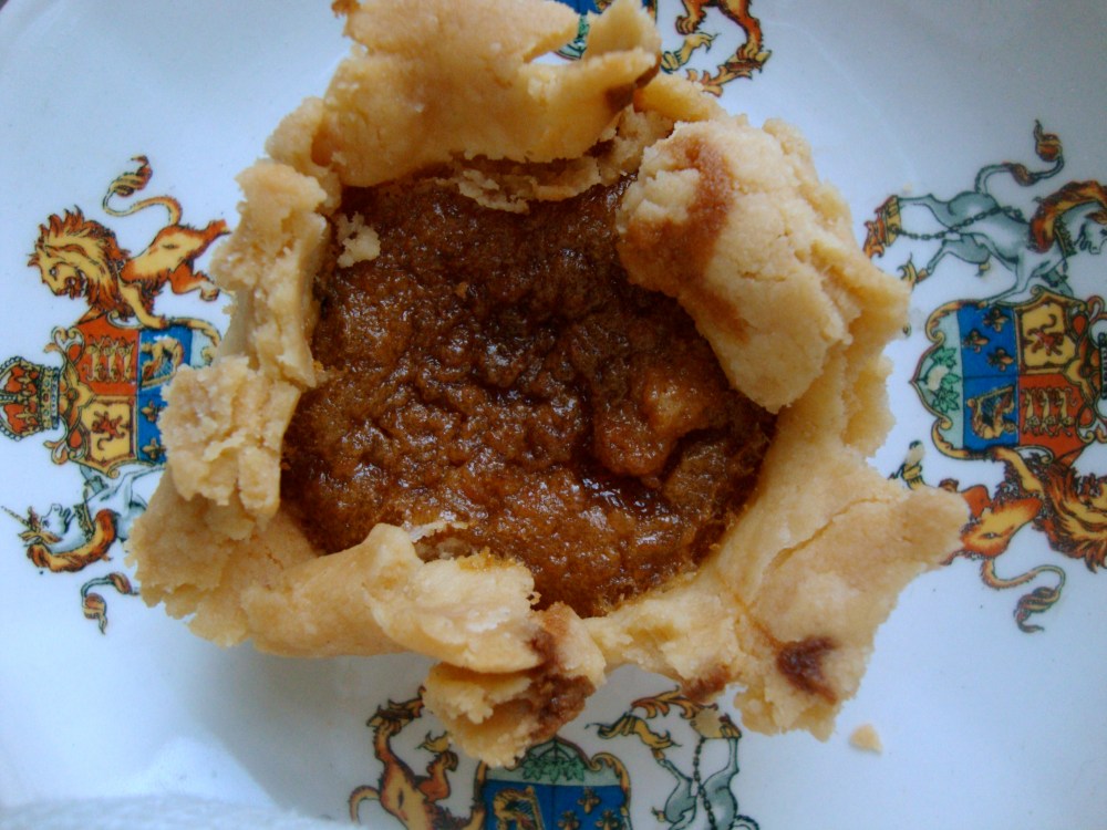 Use whatever sugar you have on hand, but if you have some Lyle’s you are in for a real treat. I looked it up, and there is a British cousin to the butter tart called treacle pie. So, maybe my butter tarts are part British treacle pie. I am okay with that because, as I’ve said before I love British food (strawberry rhubarb trifle, sticky toffee pudding, coronation chicken ect). I even photographed my butter tart on the saucer of my Queen Elizabeth tea cup.