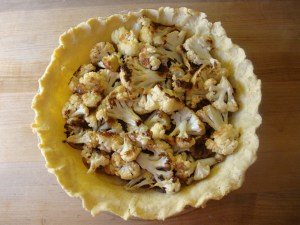 This is ANOTHER excellent recipe from Smitten Kitchen. I made a gluten-free version for New Year’s Day and it was well loved and totally devoured. I was attracted to this recipe because I am addicted to caramelized onions which appear in many of the recipes that I make (wild mushroom cobbler, red wine and squash panade, potato and goat cheese pizza, pasta with greens and oregano, Swiss chard and feta phyllo triangles, pineapple and ham pizza, layered wild mushroom and blini casserole). The exciting discovery for me was that roasted cauliflower is crazy delicious! I had a hard time not eating all of the roasted cauliflower that was meant for the tart. I am not the biggest cauliflower fan (although I do make one delicious cauliflower soup). Many of the folks who I fed this tart to on New Year’s Day commented that they usually do not care for cauliflower but they liked this tart. It could be the over the top amount of cream and cheese in the tart, but I am here to tell you that the roasted cauliflower all by their little vegetable selves were delectable!