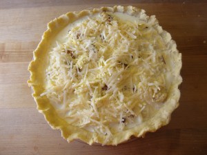 This tart is really more of a fancy quiche than a tart. I have never made a quiche with mascarpone before and it was pretty darn tasty. Mascarpone is a delicious Italian cream cheese that seems more like sour cream. I have only discovered it recently and thought that it might be one of those special gourmet ingredients one could only find in a big city. Nope. They had it in the cheese section of the Krueger super market in Maryville, Tennessee (allowing me to make a Ricotta and Drunken Spiced Fig Tart). If you can find mascarpone, it is very nice and you should give it a try, but if you cannot find it I think that sour cream would work just as well.