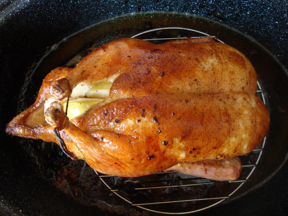 This is going to be about roasting ducks, but if you want my thoughts about goose preparation, they can be found here.  I am good at roasting duck.  I have done it about once a year for about 12 years, so I feel like I have it sorted out.  It used to feel a bit daunting, but then one year I made duck confit from scratch and roasting a duck has seemed simple since then.  Roasting duck really isn’t difficult and your efforts are rewarded in three ways.   Not only do you get delicious duck meat, but you can also make stock from the bones, and you end up with about a cup of  delicious duck fat.  That’s enough duck fat to fry potato pancakes in for the rest of the winter!  Or you could make Squash and Red Wine Panade (known by my friends as Duck Fat Soup) and still have a bit leftover to make Braised Red Cabbage with Apples.  Sometimes I fry my eggs in it!