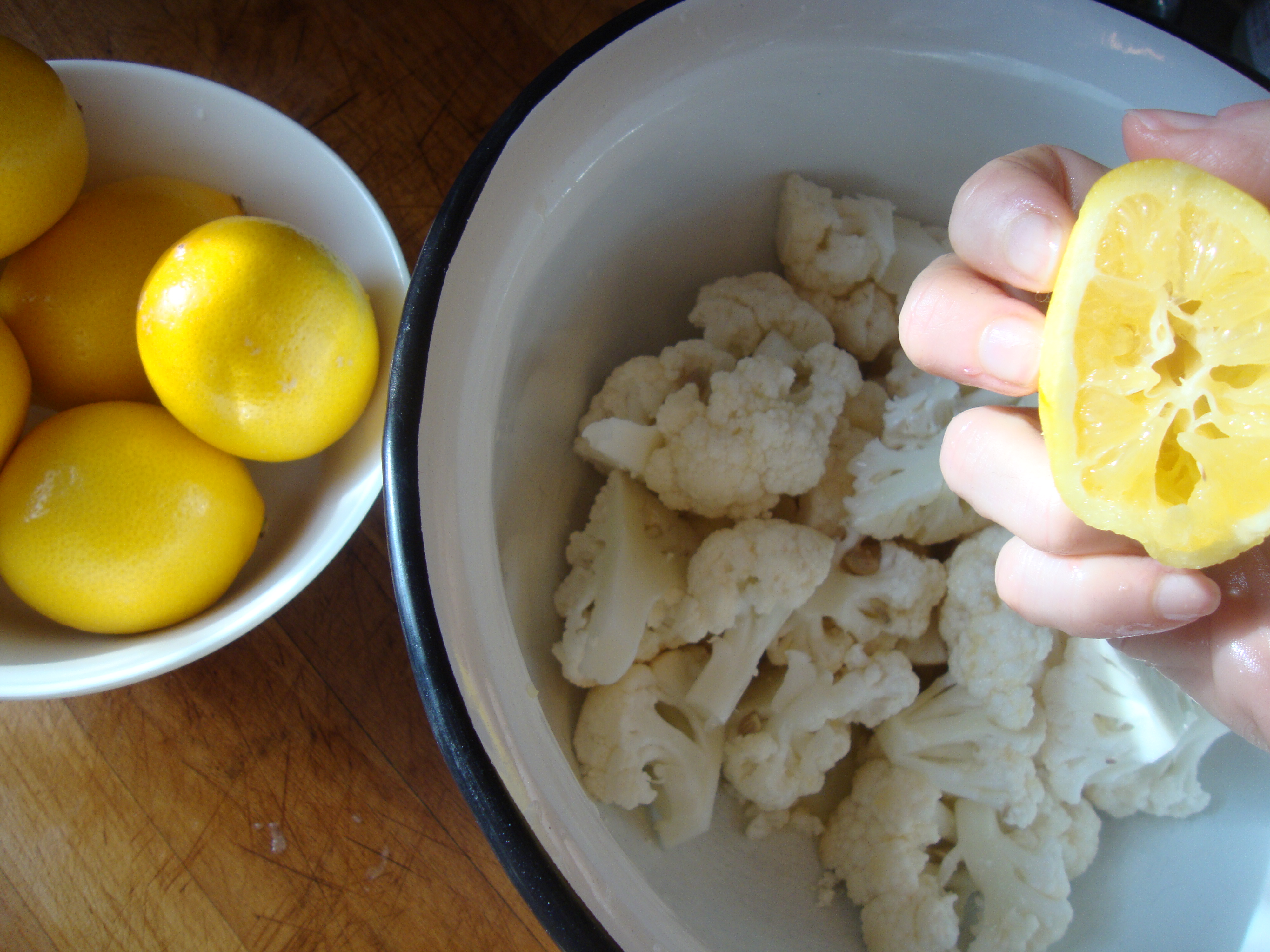 I marinated the cauliflower in lemon juice, olive oil and garlic, roasted it and ate it with home-made cumin and paprika mayonnaise. On another day, I fried it instead of roasting it. Both versions were fine, but they were not like the lemony Lebanese cauliflower.