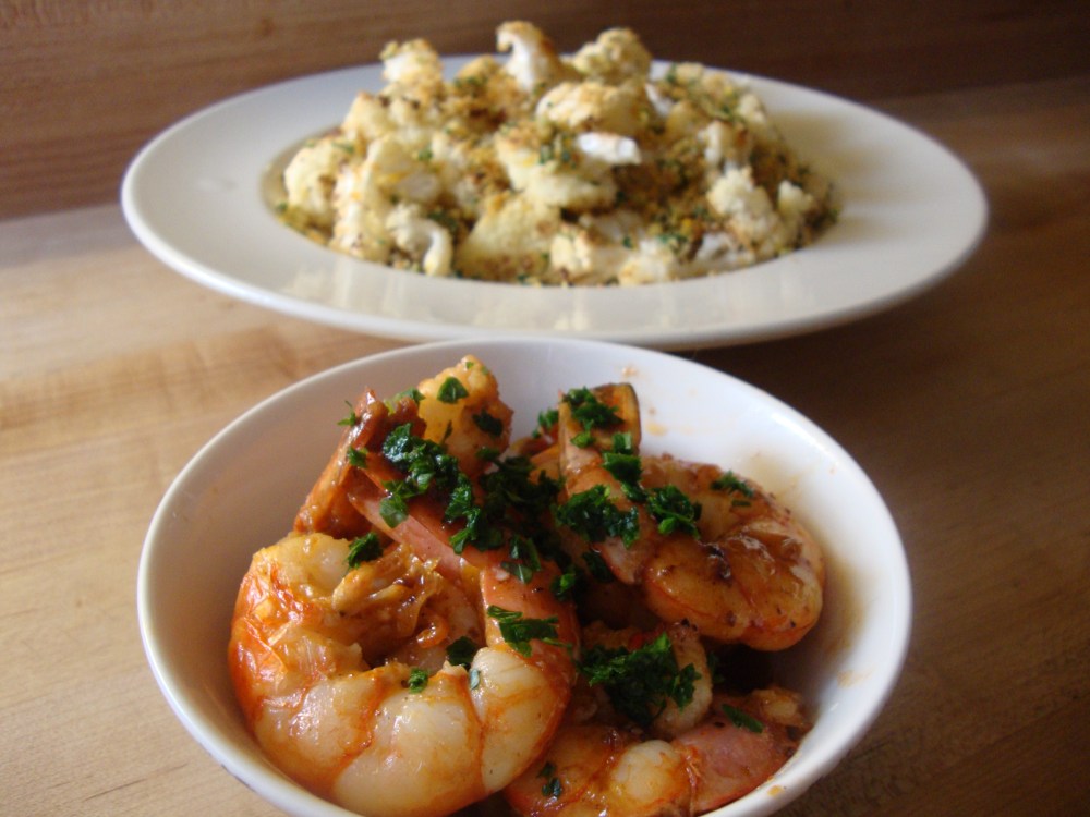 I ate this cauliflower with Sherried Shrimp for dinner and then had the leftovers on a bed of spinach with capers, slivered almonds and a lemony dill dressing for lunch. So good.