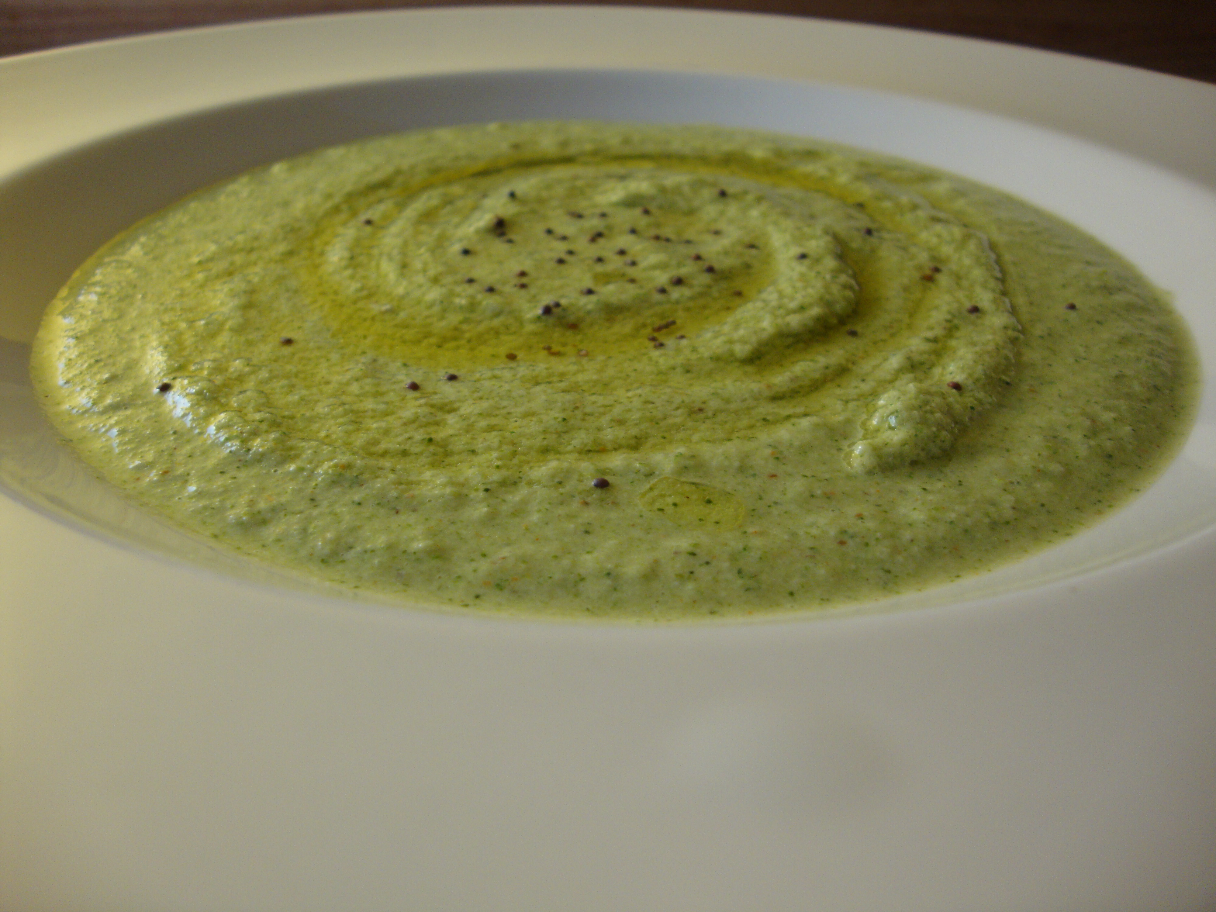 - Heat some more olive oil in a clean skillet, when it is hot toss in some more black mustard seeds and curry leaves if you are fourtunate enough to have them. Fry until the seeds begin to pop and then use the spices and oil to garnish the soup before serving.