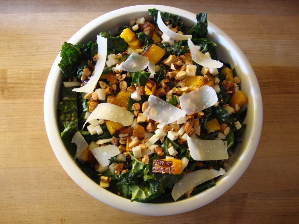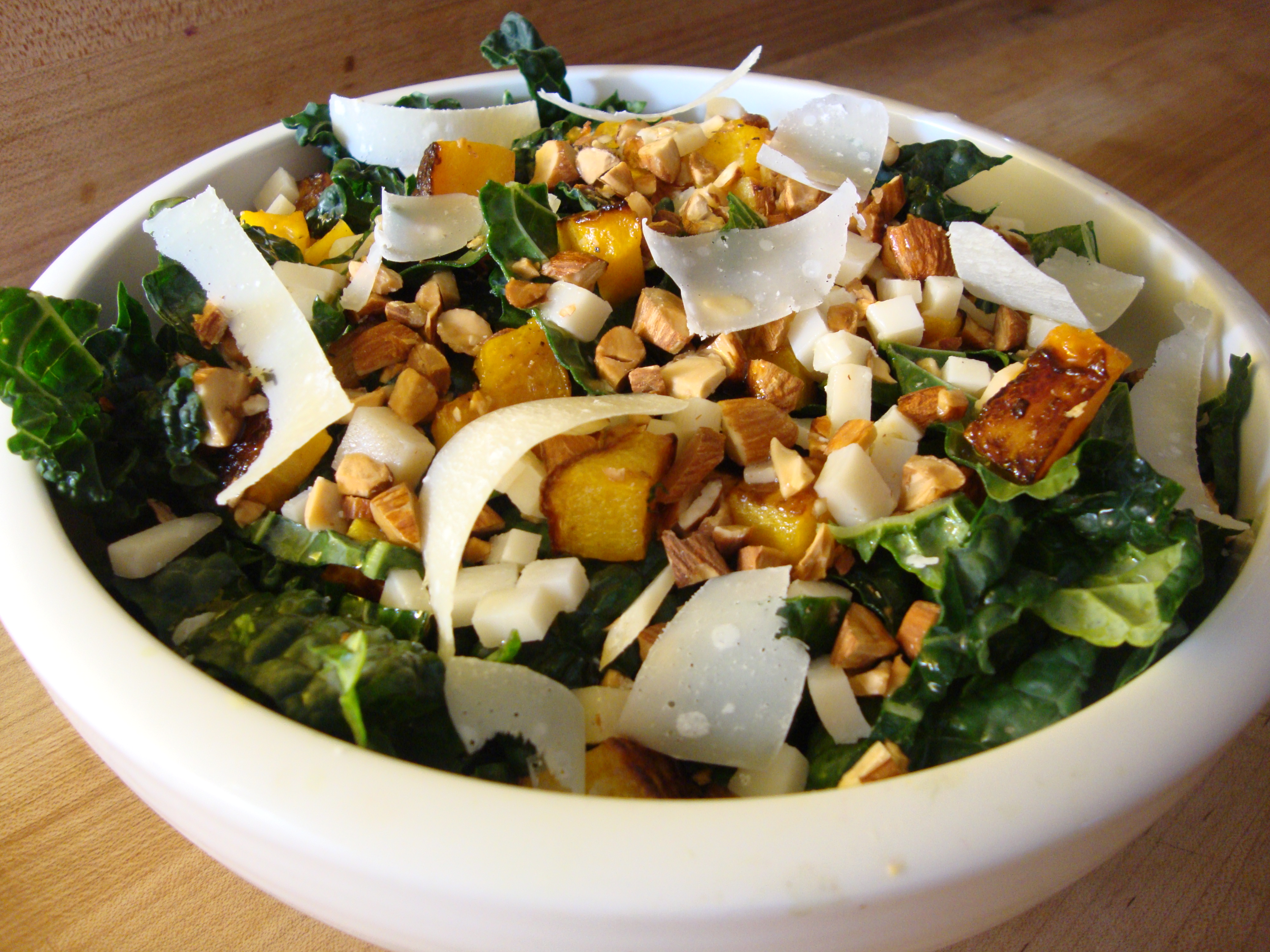 4. Add the almonds, squash and aged cheddar or goat cheese and toss to combine.