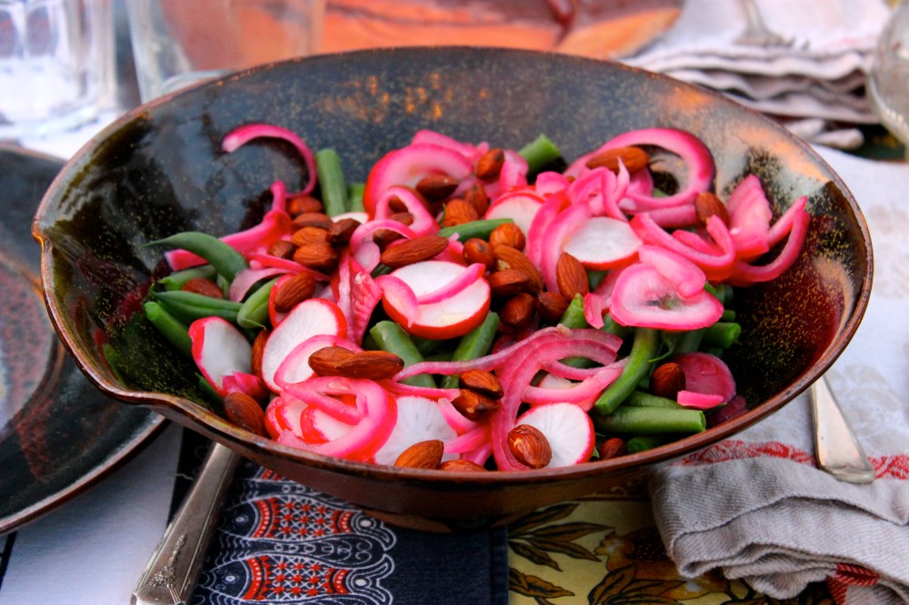GREEN BEAN SALAD WITH PICKLED ONIONS AND FRIED ALMONDS
