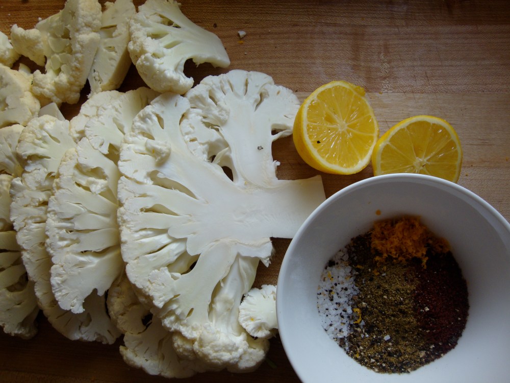- Turn the heat off and squeeze the lemon all over the slices. Sprinkle the lemon zest, cumin, sumac, salt and pepper all over the sizzling cauliflower and serve. This is very, very good with a baked chickpea pancake with spicy lemon date spread and Moroccan carrot salad.