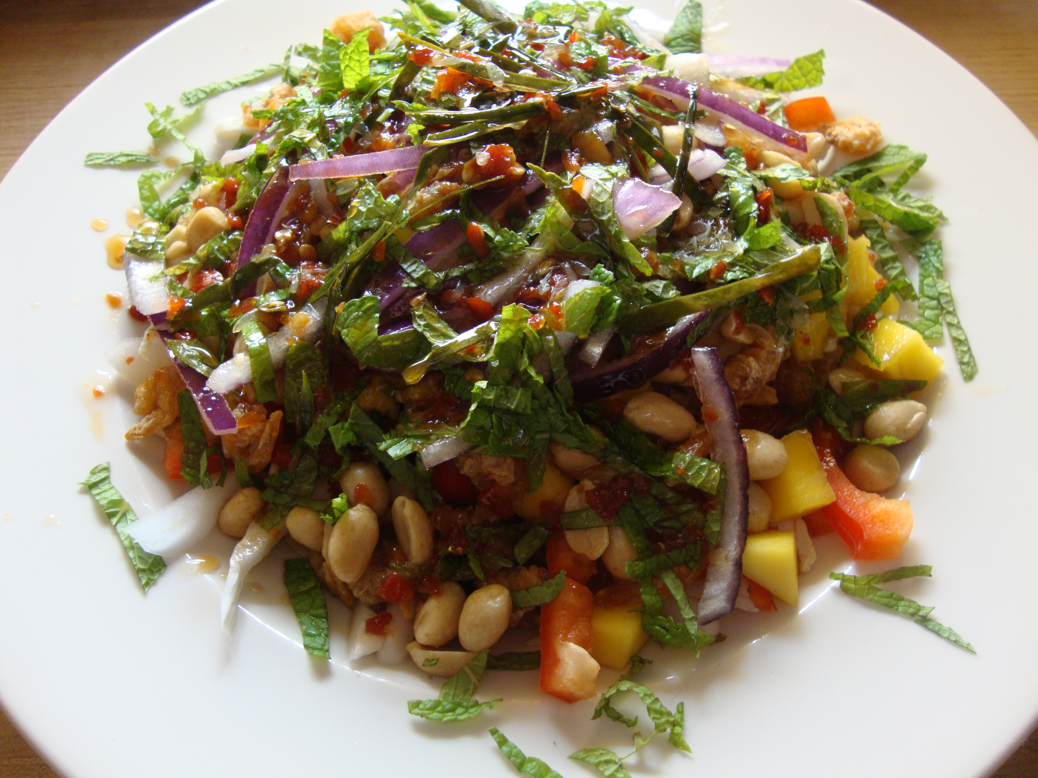 CABBAGE SLAW WITH MANGO, PEANUTS, MINT AND PUNGENT DRESSING