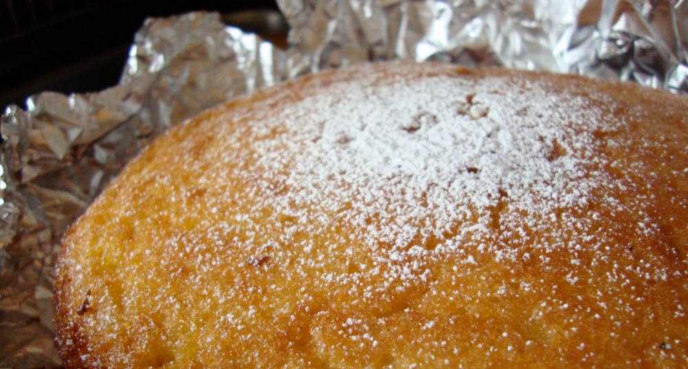 8. Allow the cake to cool for 5 minutes and then turn it out of the pan.  Allow it to cool completely and then wrap it in foil.  Let it sit for a day or two before serving.  Sprinkle with confectioners sugar sifted through a tea strainer before serving.