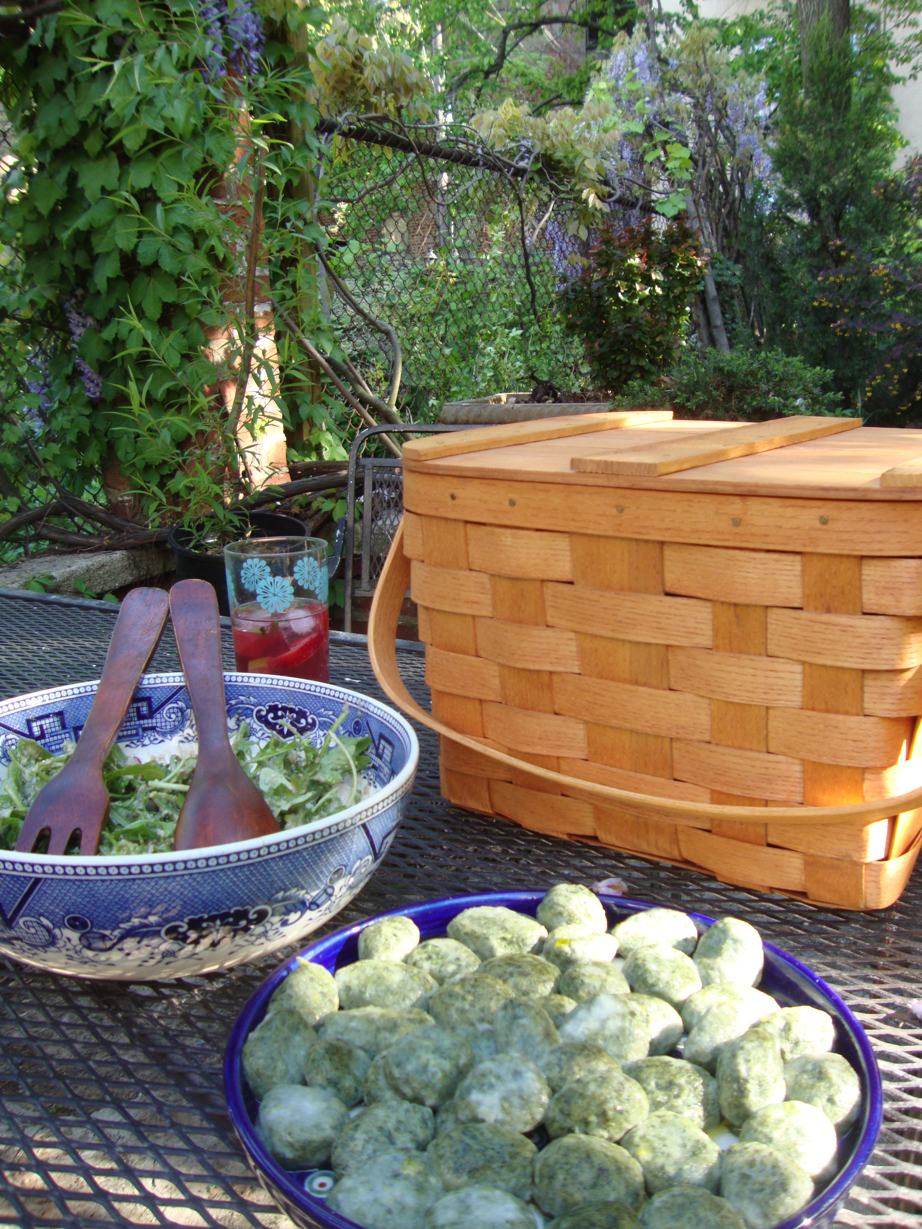 I cannot even express how well these turned out. I look forward to making gluten-free naked imperfect dumplings in all kinds of flavours in the future! I served them with a rocket and radish salad with a walnut vinaigrette (a nod to the Bulgarian nettle and walnut combo). It helped that were eating an overall fabulous meal in the beautiful backyard Brooklyn garden of our dear friends Kerthy and Paul….I mean look at this. I don’t mean to gloat but….look at this!