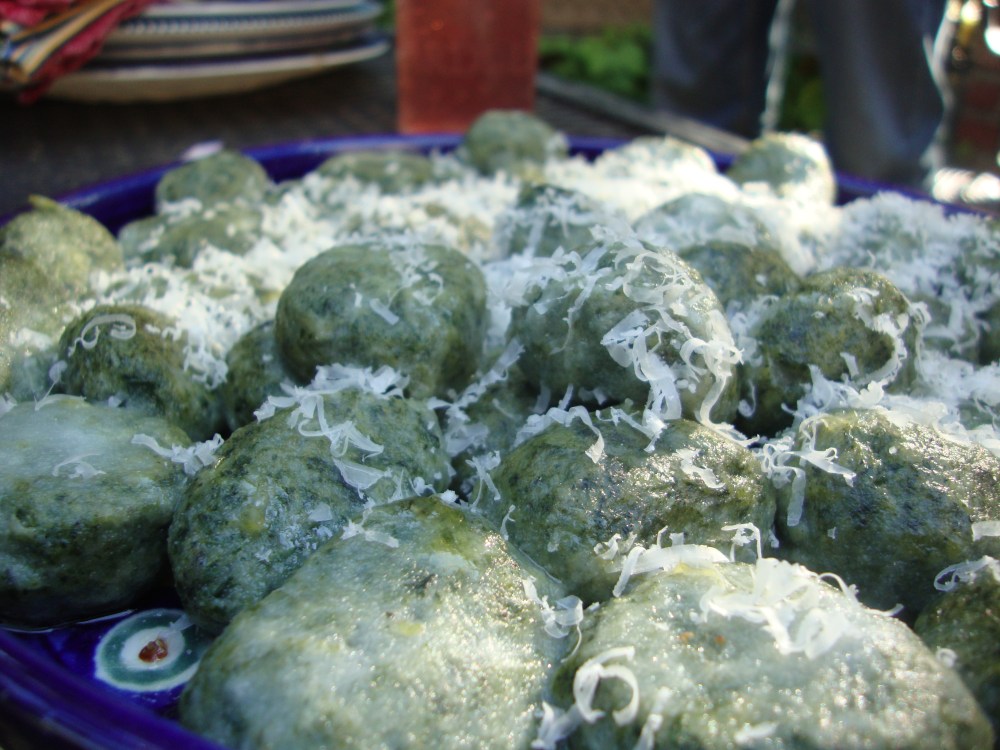 Along with the nettles, I bought ramps (wild garlic), and farmers cheese. I thought that I was going to make those Bulgarian walnut studded nettle cheese balls…but then I got distracted by reading about gnudi.