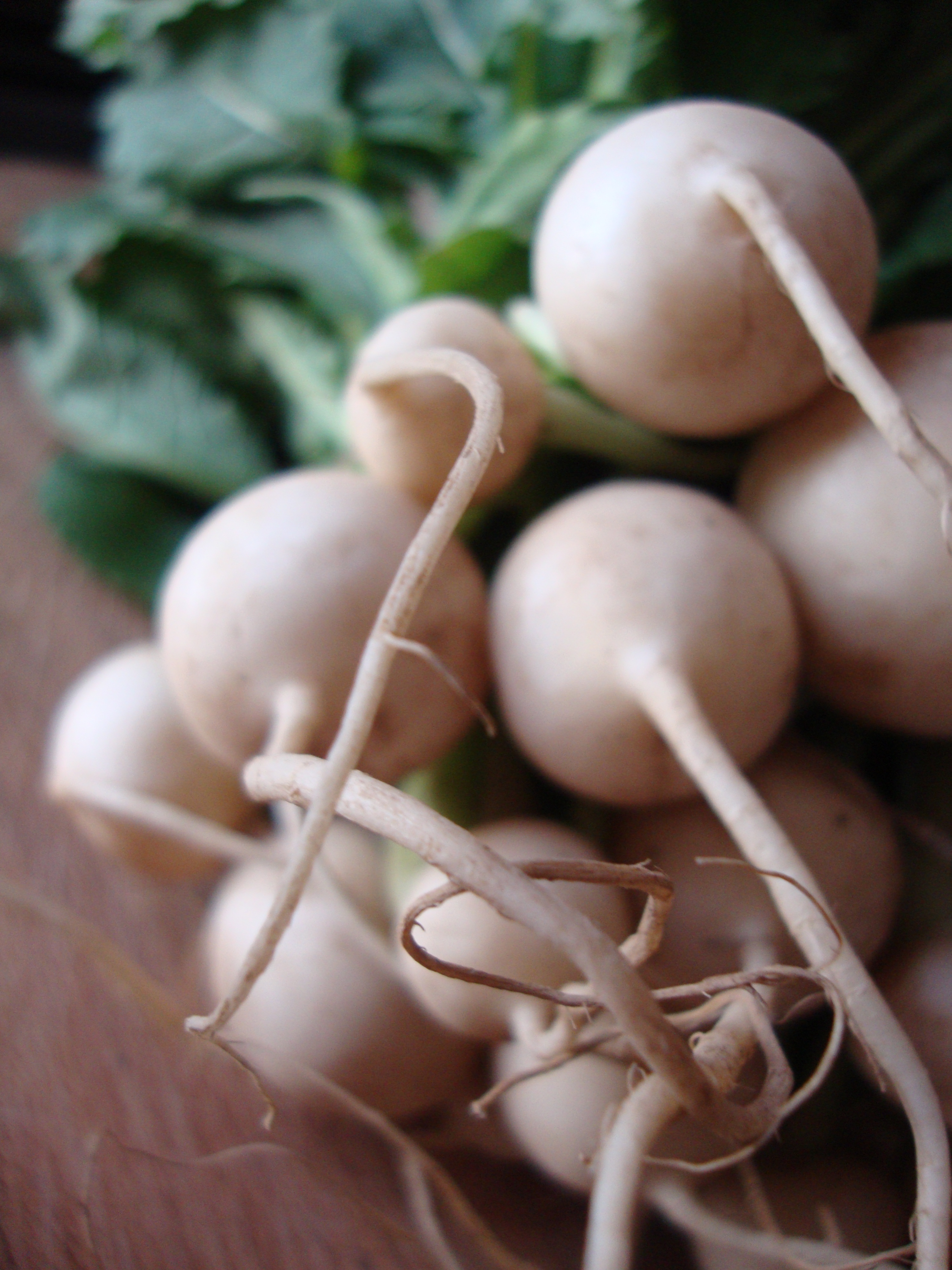 I pride myself on loving strong flavours. I like gamey meat, fishy fish, aged cheese, spice, all things fermented and pickled, bitterness and sourness in my sweetness. So, I really want to love turnips. But I just don’t. I love radishes and parsnips, but I find turnips very difficult to deal with. They are very…turnip flavoured. This does not prevent me from being taken in by the beauty and cuteness of baby turnips every spring. I love the greens and cook them up with collards or in gumbo z’herbs. But the poor, pretty little turnips often just wither in my fridge.This year I was compelled, once again, to buy these beautiful baby turnips (I mean LOOK at them) and more determined than ever to find a way to cook them. Did you know that turnips are featured very prominantly in old weird fairytales? I recenlty read an article about all of the “newly discovered fairytales” that were recently published and it included a story about the Turnip princess. You can read it here. Turnips are a magic vegetable and I wanted to eat them dammit!