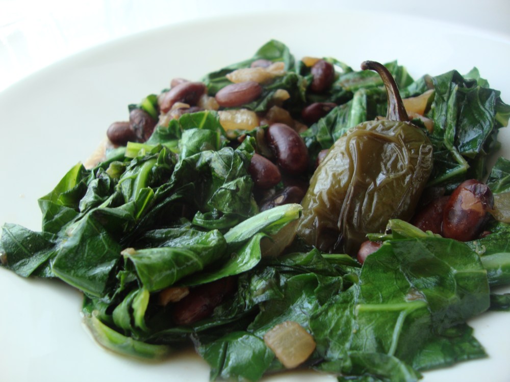 RIO ZAPE POT BEANS WITH COLLARDS AND ROASTED GARLIC AND JALAPENO