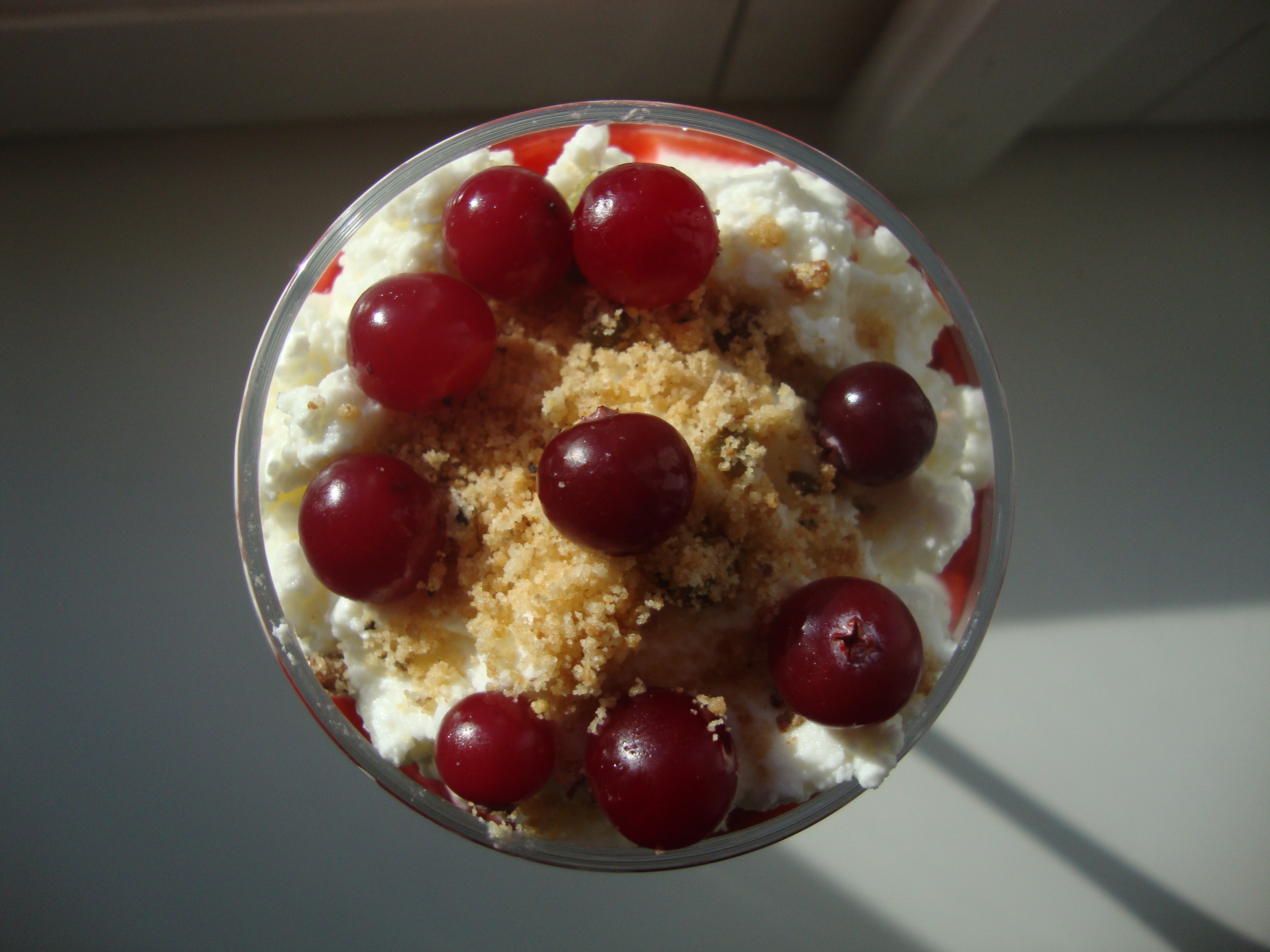 I overbought strawberries and rhubarb (surprise!) so I made them into a compote.  I had some gluten-free cardamom, rose, pistachio shortbread leftover from a batch that I made as a snack for my plane ride.  Well, I had some crumbs, but it was enough to garnish a fool.  I also had some fresh red currants (which are much tarter than you might expect!).  I sent my sister to the market to get some cultured cream  called kohu-piim which an Estonian friend recommended.  After an encounter with flustered dairy saleswoman my sister returned home with something more like a very creamy tart ricotta.  it was delicious!