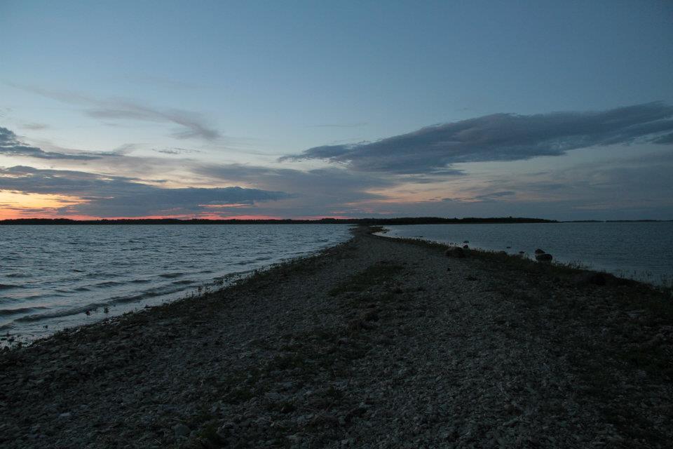 This long strip of land is called Sääretirp. It extends for few kilometers out into the sea and is supposed to be what is left of bridge that the local giant Leiger was trying build to the nearby island of Saaremaa. We went at sunset…well actually it was midsummer and far enough north that the sunset just dipped below the horizon briefly at about 3 in the morning….but the sunset sky lasted for hours and hours. At Midnight, he sea on one side of Sääretirp was choppy and bright pink and the other side was absolutely calm and black.