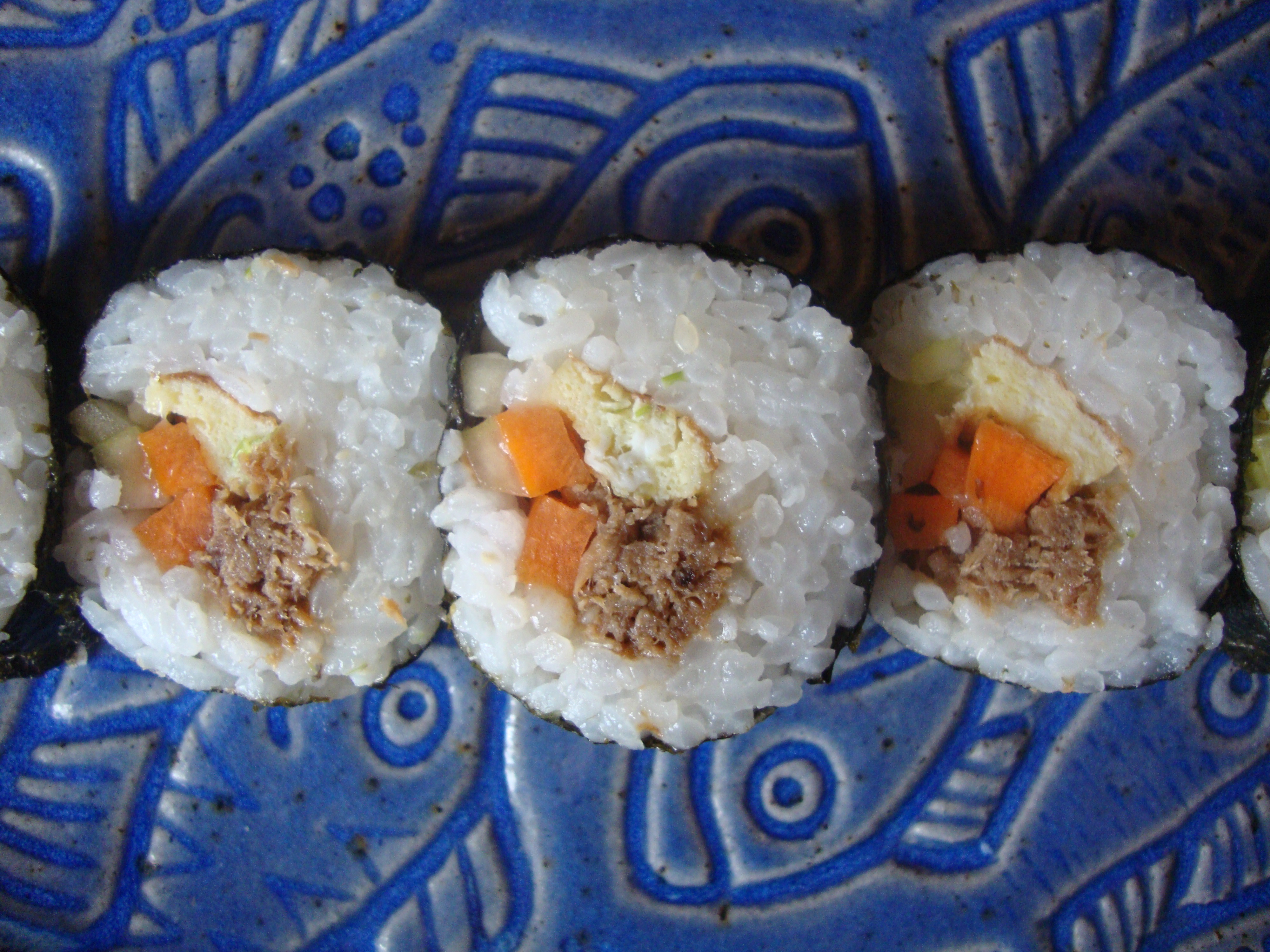 I really do miss local food. Local food is a mash-up of all the tastiest, most comforting treats from every ethnic group to ever immigrate to Hawaii. I grew up in Kihei, a few blocks away from Azeka market. Azeka market sold the most delicious marinated ribs and the best (in my opinion) sushi. In Hawaii, at least when I lived there, most convenience stores and lunch counters sold sushi that included tuna cooked sugary shoyu, pickled carrots and a bit of omelet. Sometimes it’s spam instead of Tuna (I don’t like spam myself but spam is a big part of local cuisine). Sometimes the was some seasoned shiitake mushrooms, dry shrimp flakes and other mysterious, delicious stuff in there too. At the Azeka Market lunch counter they included celery, which sounds weird but is actually delicious. The last time I went back to Maui, I had a really hard time finding this sort of sushi and it made me really sad. A lot of those old lunch counters, including Azeka’s, have closed down. Maybe the health department cracked down on all of that fish sitting out at room temperature?