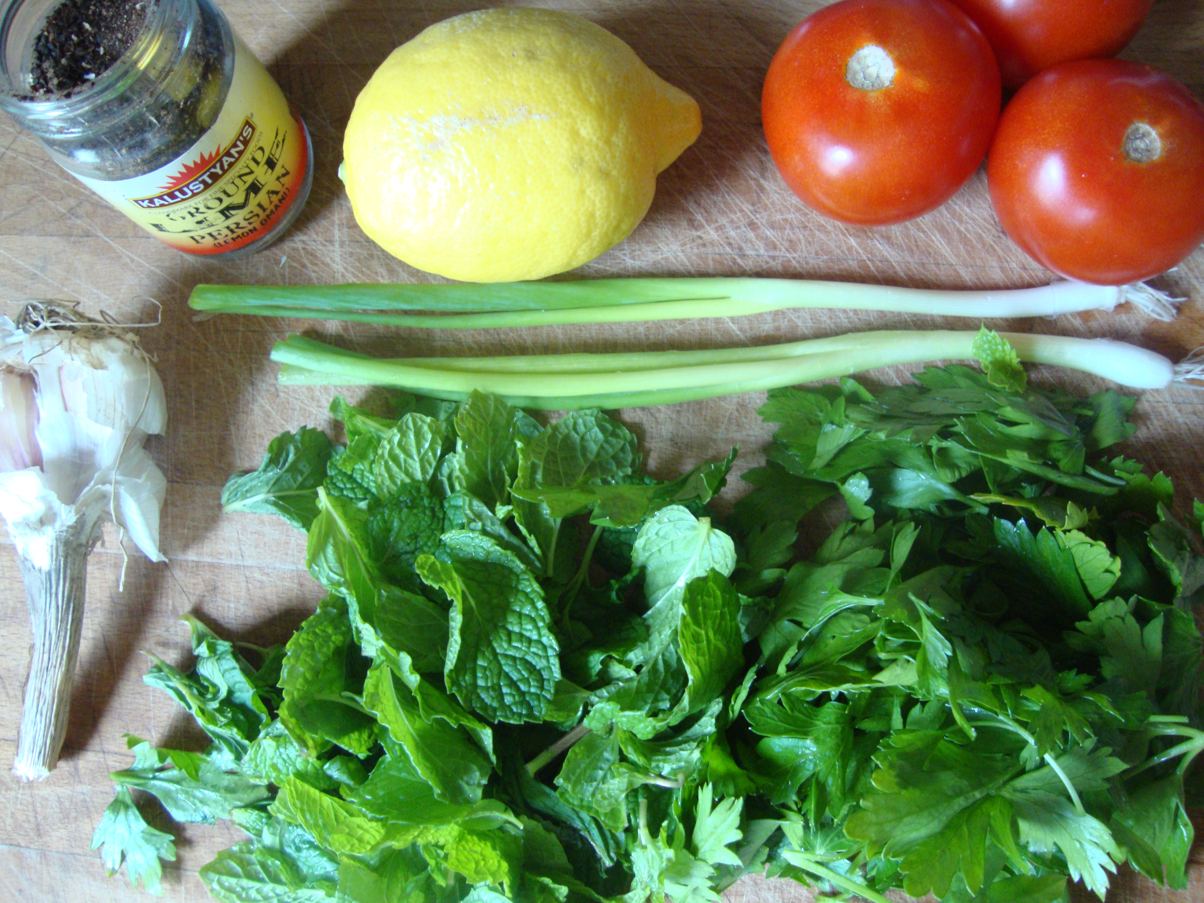 I made the following recipe up to suit my tastes. It is pretty heavy on the herbal and lemony flavours. Feel free to adjust it to suite yourself! If you are someone, like me, who likes an excuse to purchase unusual spices I encourage you to get your hands on some ground dried Persian lime. It has a really lovely tart flavour that I love in this Tabbouleh. Sumac is another unusual sour seasoning that is fun to play with in this recipe. If the idea of tracking down Persian lime or sumac stresses you out, don’t bother! Just add more lemon juice for sourness if you like! I got my Persian lime from Kalustyan’s and my Sumac from Sahadi’s.