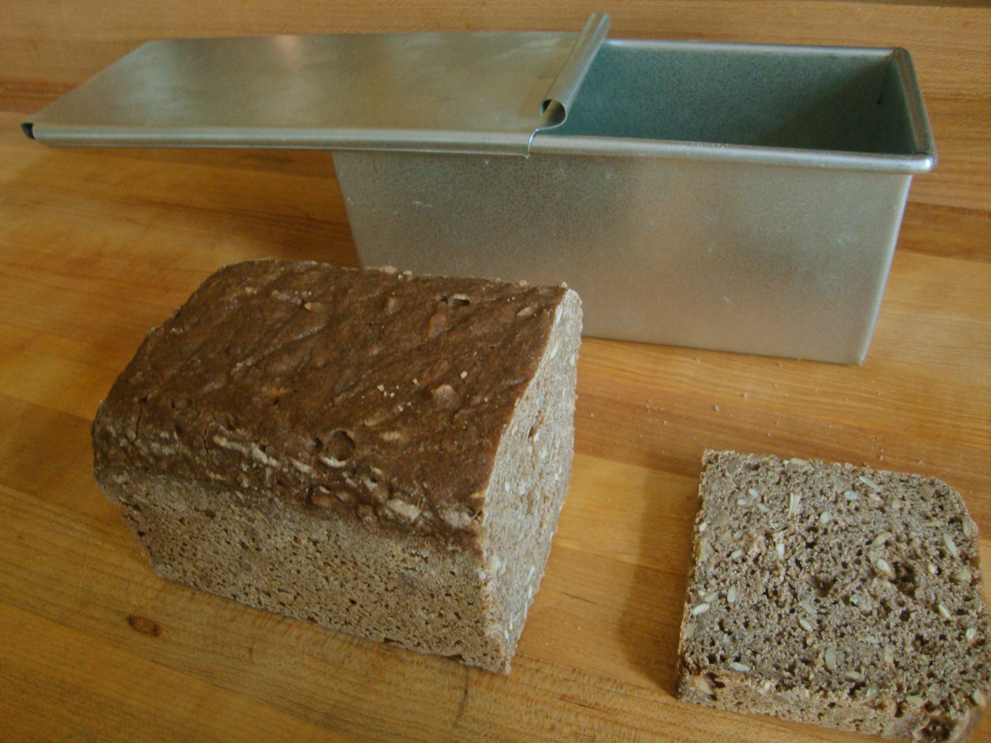 - Coat a 9″ x 4″ x 4″ pullman bread pan with oil. Dust the pan with gluten-free flour.