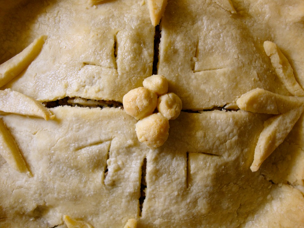 - Cut vents in the top of the pie. If you like you can make little leaves and berries out of the extra dough (I always do so in order to hide little cracks and flaws in the crust!)
