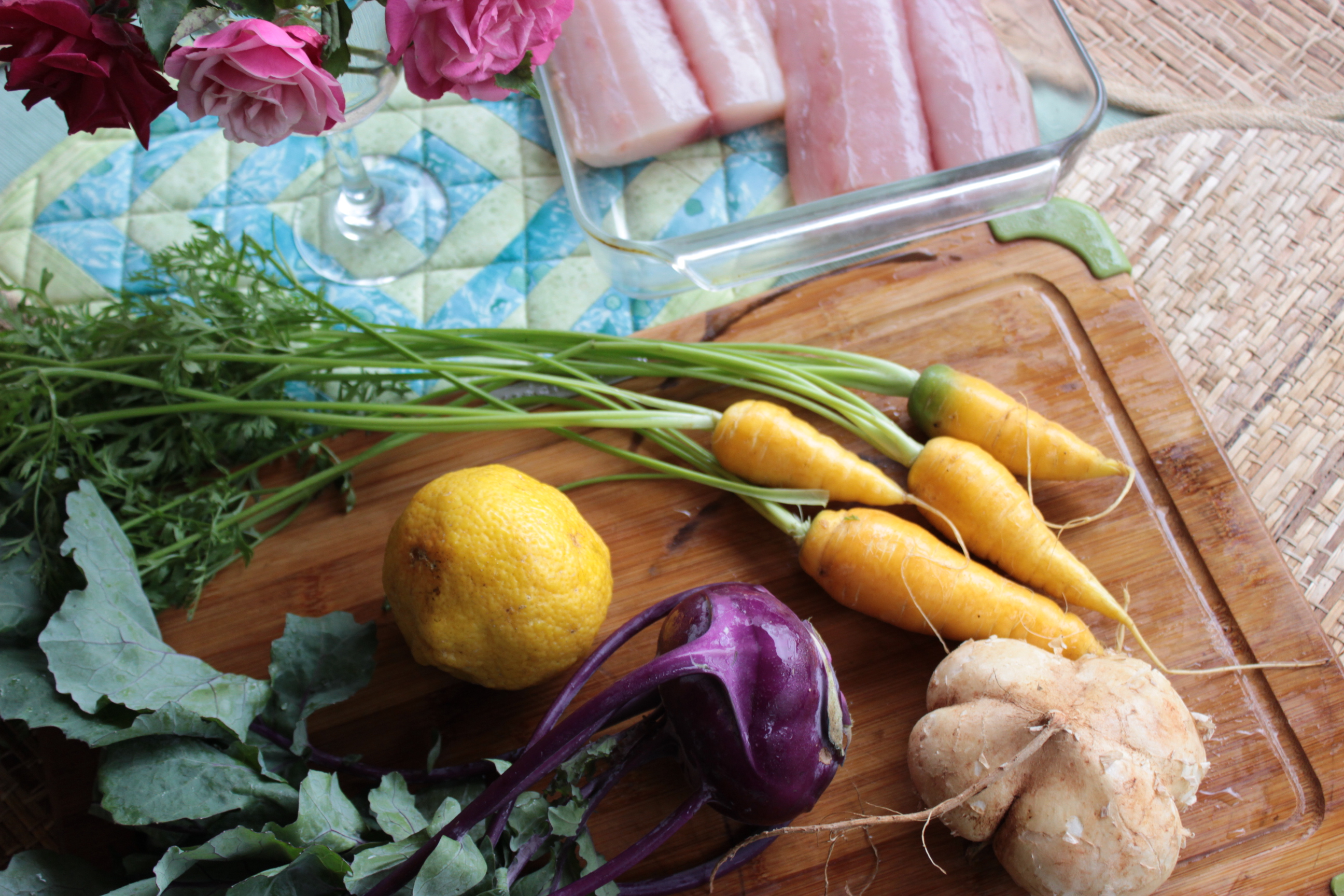 My husband and I are on Maui visiting my mama right now, and we sent the first five days helping her with her garden. Okay in truth, my husband did all of the helping with the yard and I cooked (big surprise). The yard was mowed and weeded, worm compost was harvested and turned into the raised beds, baby lettuces, greens and tomatoes were planted. Since my mother is just putting her spring garden in, we have been going to lots of farmers markets and groceries that carry local produce so that I can buy ingredients to cook them. When I lived on Maui, most of the vegetables were flown in from California. Now you can buy the most amazing local produce. It is truly stunning.