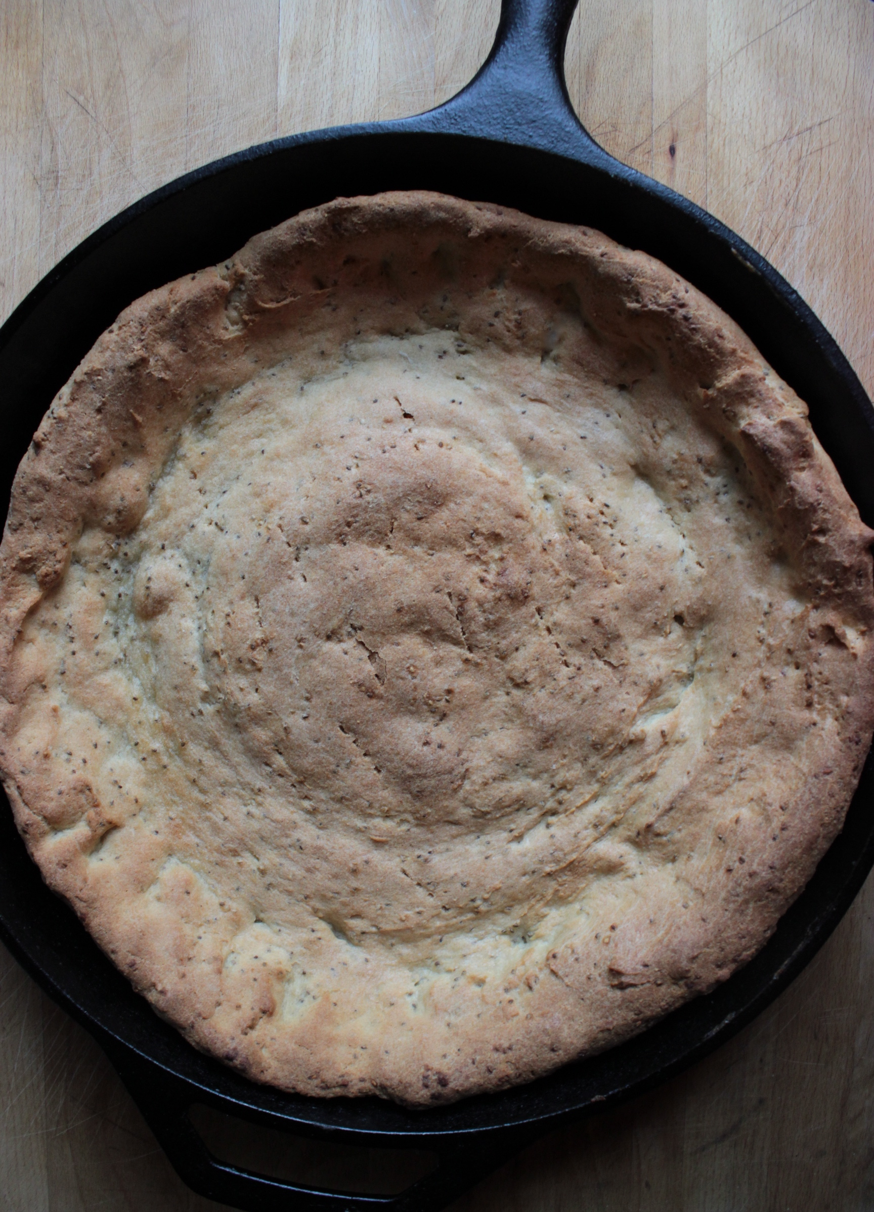 Until recently, I have had a resigned attitude toward making gluten-free pizza crust at home. The only really good gluten-free pizza’s I had eaten had been made in a wood-fire oven or on a grill and I don’t own either of those! But for the last few months I have been on a very involved bread baking kick that has led me to a really good pizza dough recipe that can be made in a regular oven! I make it in a 12 inch cast iron skillet and cannot speak to whether it would work just as well in a baking dish. Give it a try and let me know!