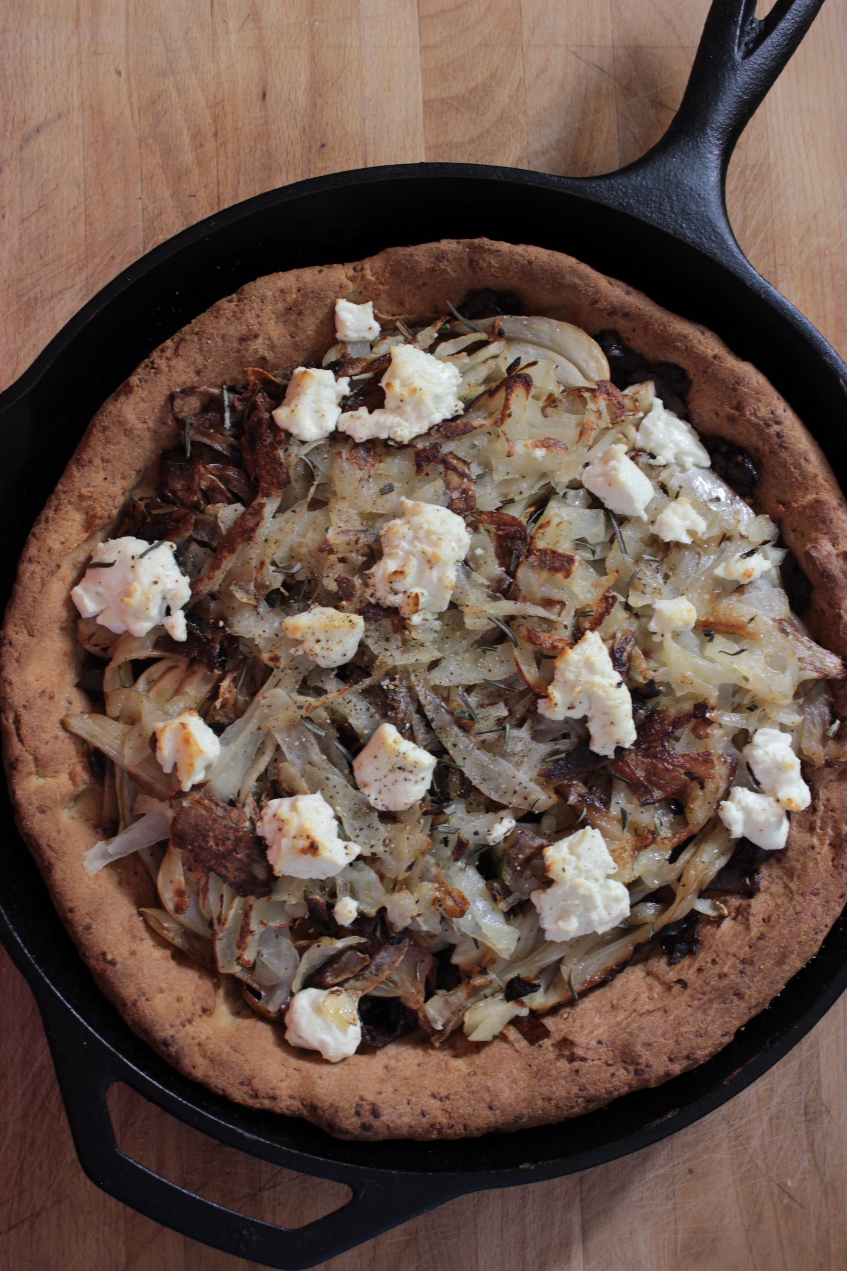 - Slather the bottom of a 9 inch cast iron pan with 2 Tablespoons of olive oil.