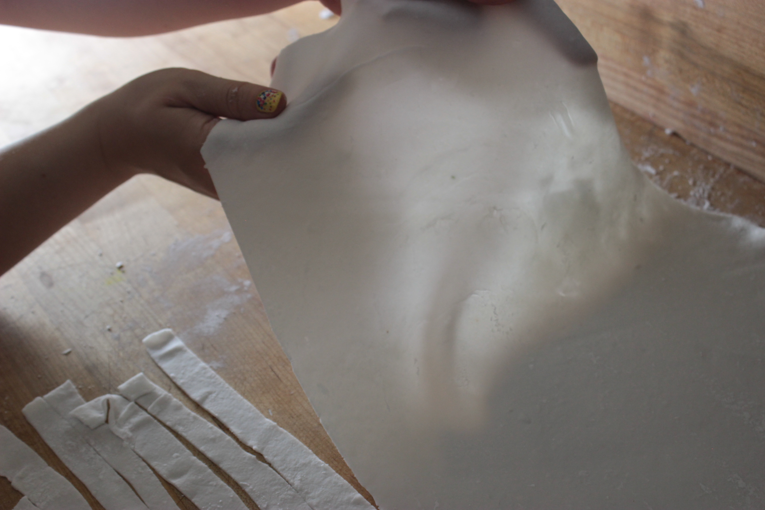 - Slice the noodles as thin as you like with a sharp knife. Repeat the process with the remaining lumps of dough.