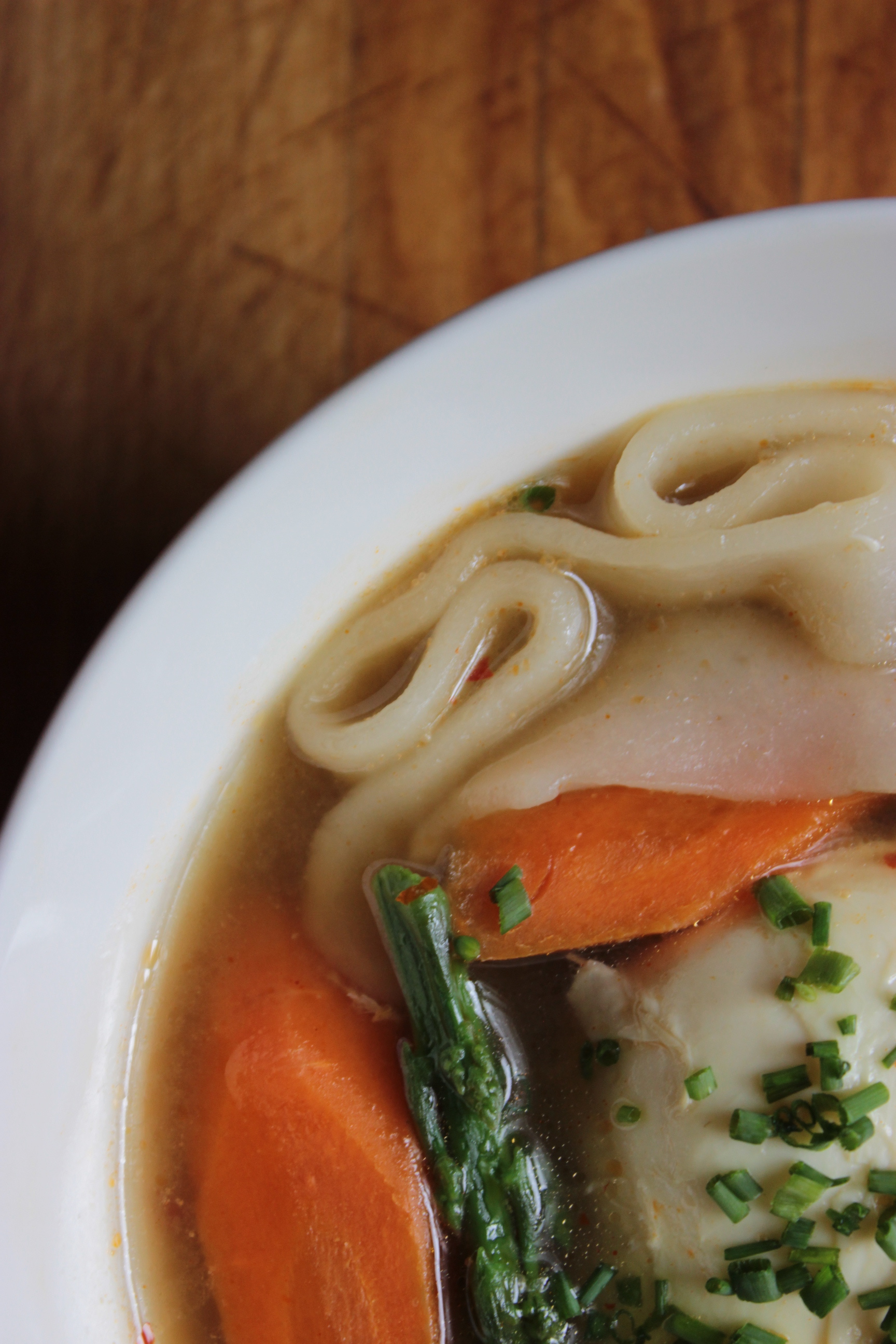 - When the broth comes back to a boil, drop in the noodles.