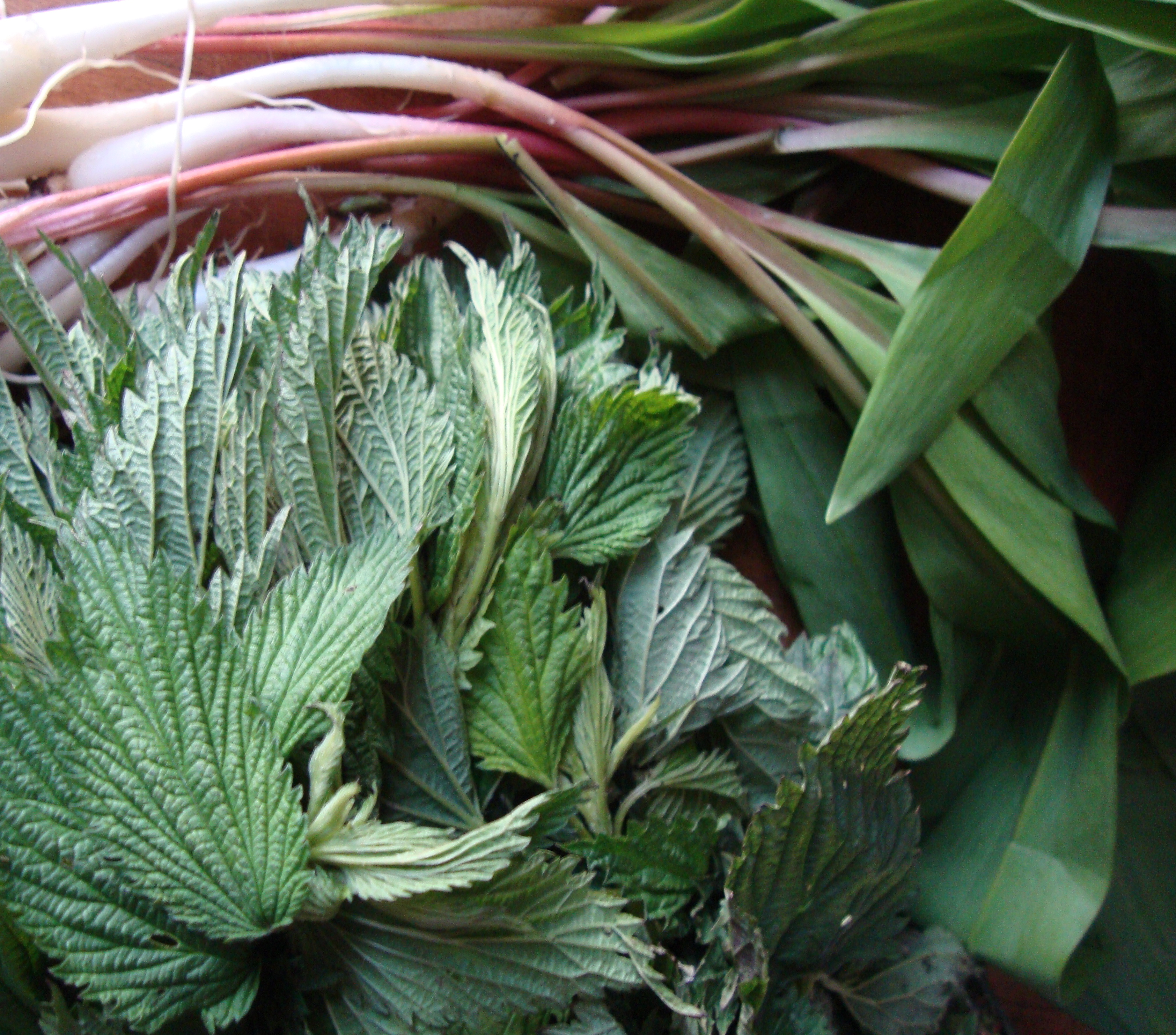 - pull the tender steamed nettles leaves off of their stems. discard the stems. Press the extra liquid out of the nettle leaves and chop them.