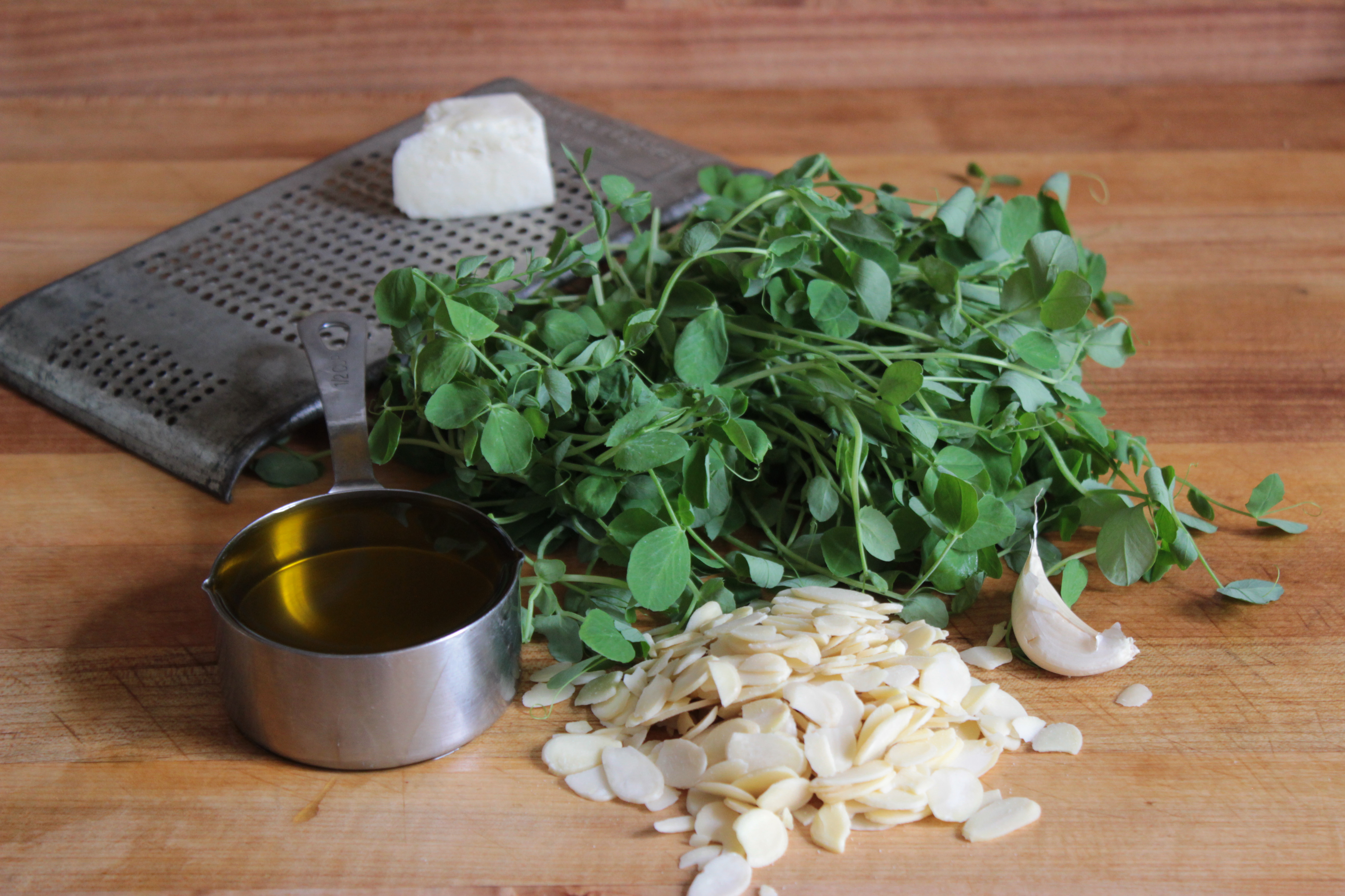 My new favorite “alternative” pesto is watercress pistachio pesto! The watercress gives it a bold spiciness that compliments the garlic very nicely.