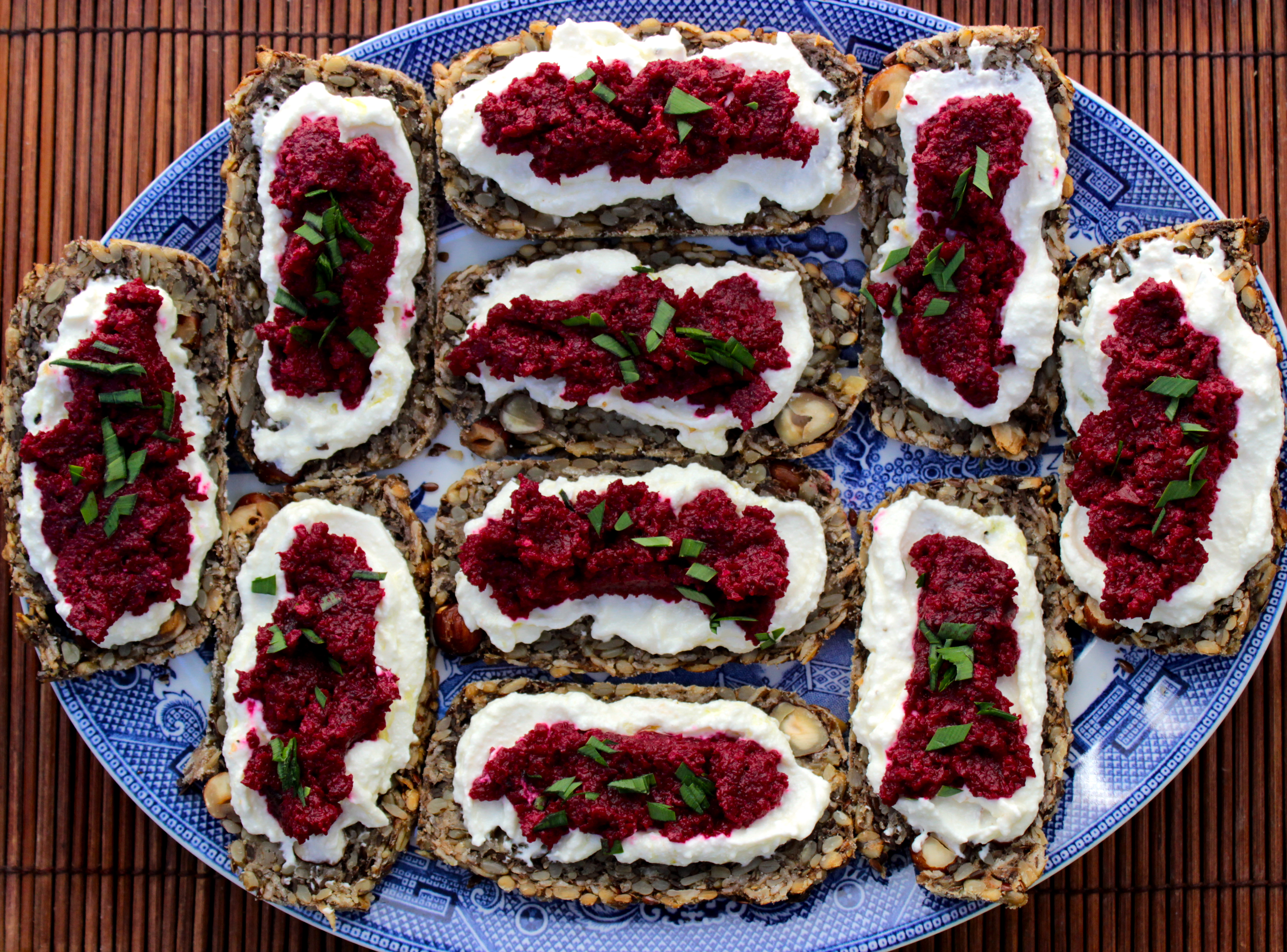 - When the beets are cooked and cool enough to peel, remove the skins and chop into cubes. Place in a food processor with the dates, cognac, garlic, lemon juice, walnuts, and salt. Puree until the texture is to your liking.