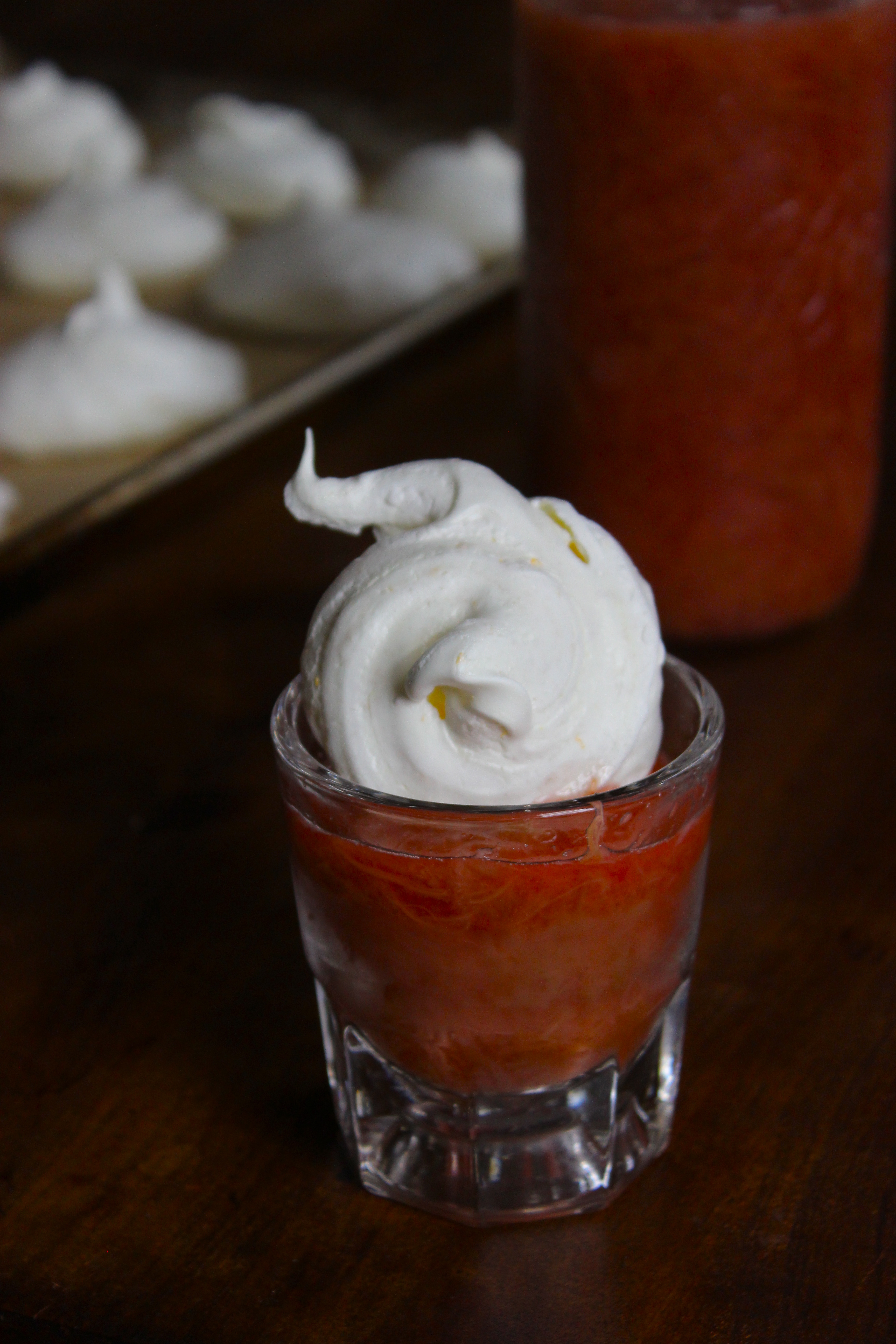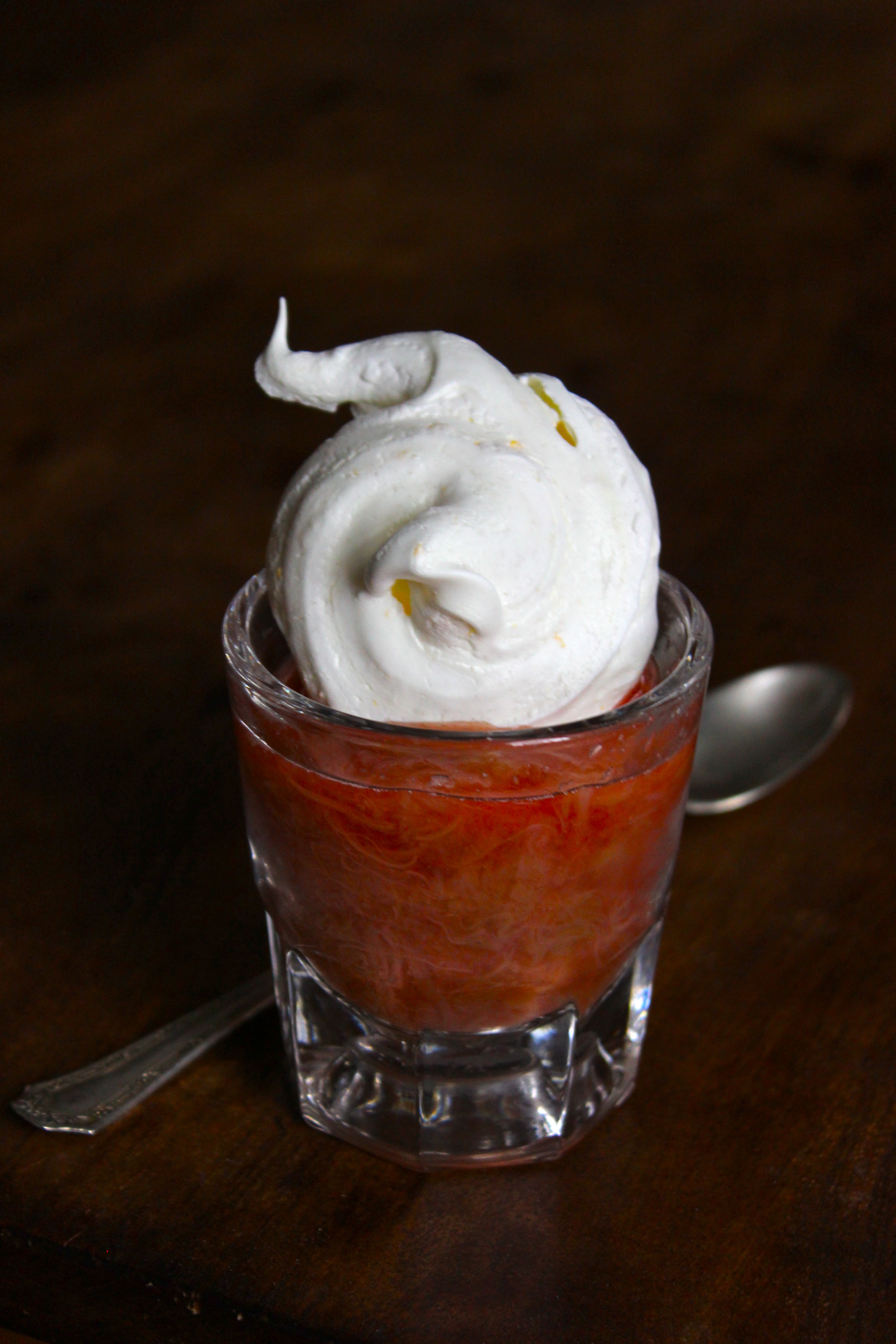 Rhubarb Campari Compote with Orange Peel Meringues