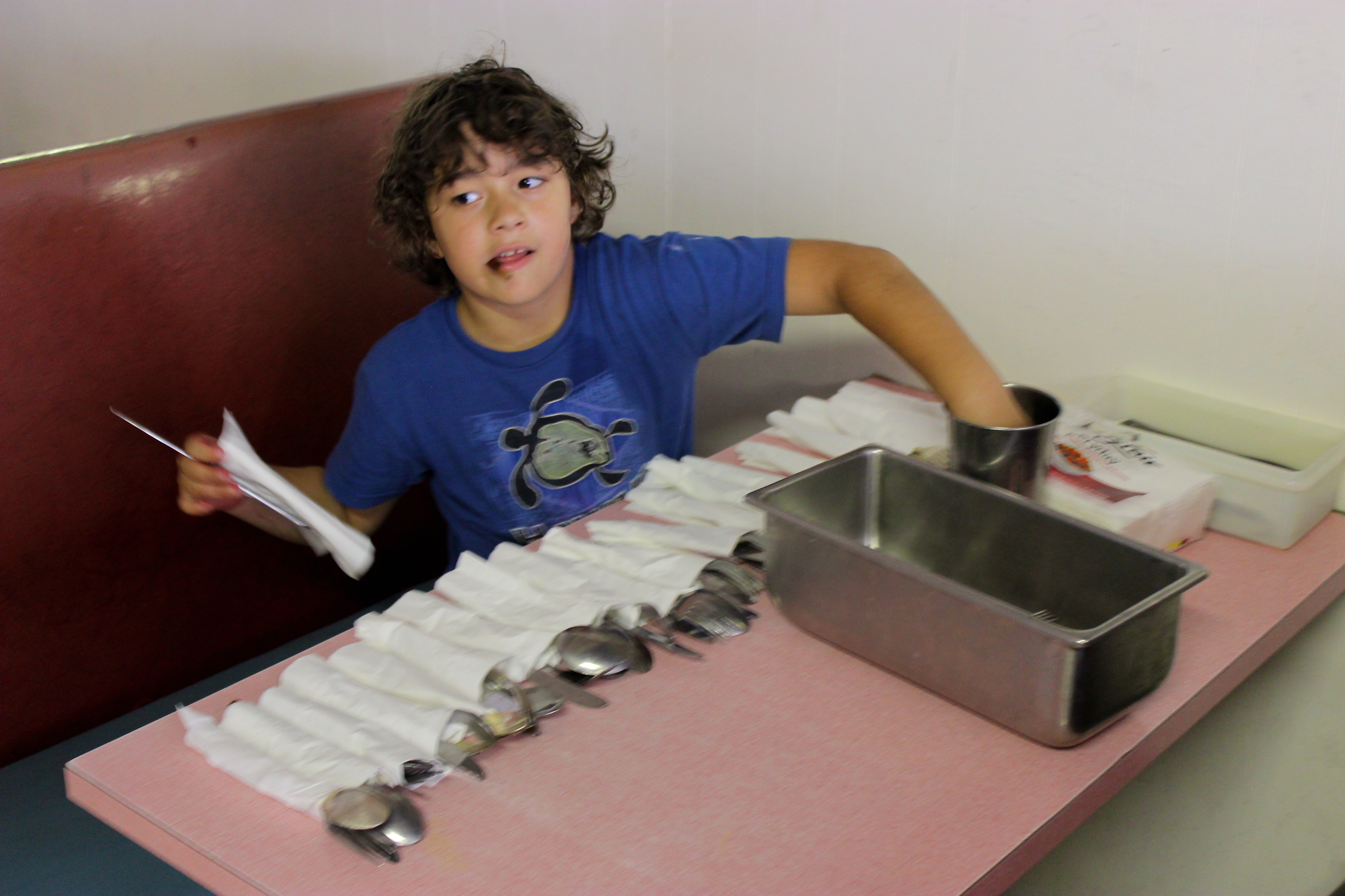 We started out by tasting the basic flavours (sweet, salty, spicy, bitter, sour, umami) and charting out which flavours each kid liked and didn’t like.  As the week went on, we would talk about which of these flavours we detected in cheeses, mayonnaise, meringues and all of the other foods we cooked.  Also, the one kid who insisted, on the first day, that he hated everything but sweet had to gradually admit that he also liked salty and sour flavours.Run a Luncheonette Camp at The Sunview