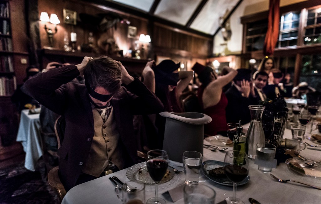 The Illuminati Ball is a surrealist soirée that includes intricate cocktails, mouth-watering delicacies, inspiring music, devilish dances and esoteric rituals. The guests are picked up in Manhattan and taken by limousine to a secret lakeside estate.   Depending on how the guests choose to participate, the guests may be involved in power struggles, morality tests, and anthropomorphic escapades.  The experience is inspired by the famed “Illuminati Ball” thrown by the Baroness and Baron de Rothschild in 1972.  68Kr7EtrMy goal was to create a decadent meal worthy of the sumptuous atmosphere of the ball, but also to ultimately leave the guests feeling like they had eaten real, nourishing food.   I don’t want to give too much away about the piece but, for reasons both solidly dramaturgical and subtly subversive, the menu needed to be entirely vegan.  Additionally, the menu is totally gluten-free, because it’s important that the chef (me) be able to taste the food!  This project has been an exciting challenge and I’m very proud of the menu.