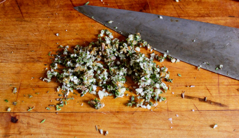 1. Chop the garlic, rosemary and anchovy together until the mixture is fine.