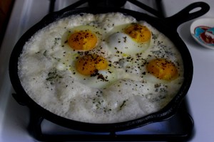 Caramelized Cream Eggs with Rosemary and Anchovies