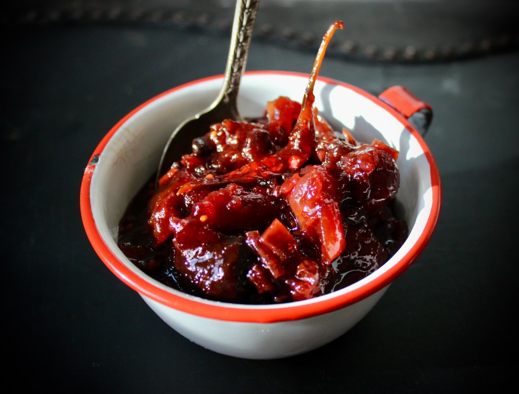 May I humbly suggest that cranberry sauce should be replaced with cranberry chutney at your next holiday meal? You don’t even need to wait for a special occasion meal! I am devoted to having sweet condiments with my savory food, so I make and eat a lot of fruit chutney. In my freezer, right now, I have homemade rhubarb chutney, mango chutney and cranberry chutney. Usually, I would have plum chutney as well, but my farmshare did not send me a single plum this year and I obviously did not get to travel home to Gabriola Island this year to do my annual wild plum harvest and chutney making. Chutney is truly simple to make and a good way to use up and preserve fruit if you are lucky enough to have more than you can eat fresh. I eat chutney with …